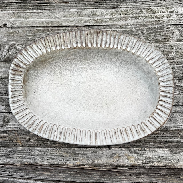 しのぎ楕円皿(大)*アンティークホワイト