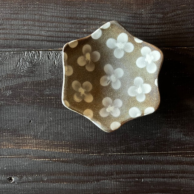 星形豆皿*白い花*ツヤ