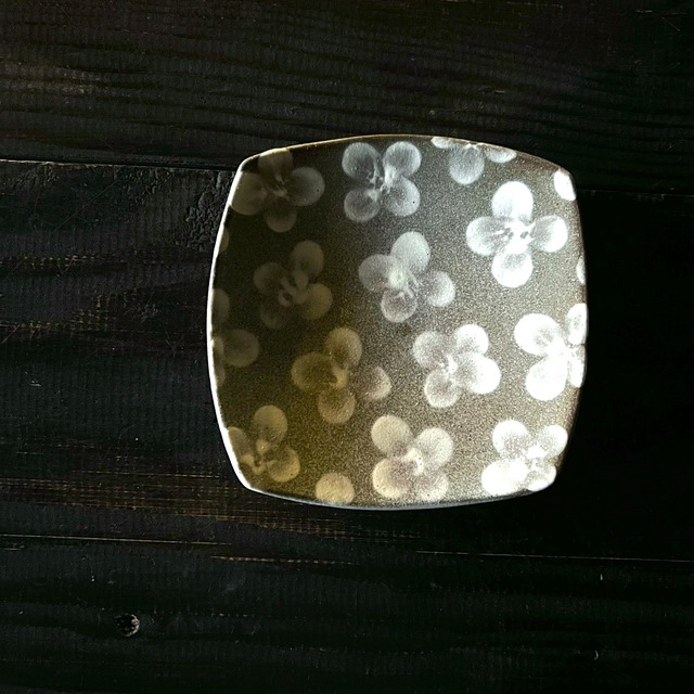 しかく豆皿*白い花*つや