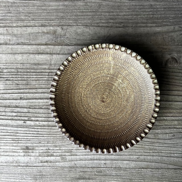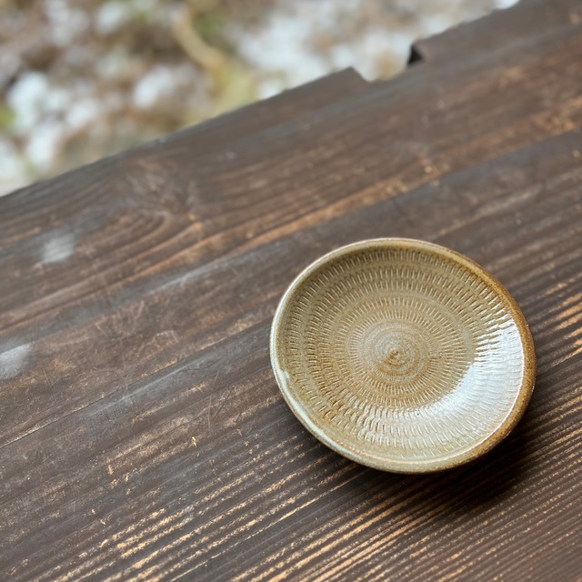 しのぎの彫りでふちどりされた、主役級の小皿。 取り皿にしたり、カップのソーサーにしたり、小皿は何かと出番も多く、毎日使えそうです。 ちょっとしたお菓子も、お気に入りの小皿で気分を盛り上げて、 お菓子タイムを満喫してみませんか? 内側のとびかんな模様と手彫りのふちどり、 手仕事の美しさを感じられる器です。 今回の窯では、少し濃い色に焼き上がっています。 とても渋くてかっこいい焼き上がりです。 直径:約15cm 高さ:約2.5cm 福岡県東峰村小石原で作る小石原焼。 作る人の気持ちがこもった物。 使うほどに愛着もわき、 日常がもっと豊かで心地よくなる。 ※商品に関する注意事項 商品は全て手作りのため、大きさや形、色、柄など多少異なります。 下記全てご確認の上、ご購入をお願いいたします。 ひとつとして同じものはないため、手作り特有の個性としてお楽しみいただけると幸いです。 【色斑・釉だれ】 釉薬のかかり具合や、焼く際の窯の位置等によって、色斑が発生する場合がございます。 また、器の高台の底の部分まで釉薬が付着している可能性がございますが、 使用には特に問題ございませんので、安心してご利用下さい。 【器の底のざらつき】 器の裏の釉薬がかかっていない部分は、多少のざらつき、欠けている場合がございますが、 使用には特に問題ございません。 【サイズの誤差】 陶器は焼成する際に、収縮するため、大きさや重さが多少異なる場合がございます。 【色について】 お使いの端末や閲覧環境、画像処理の工程により、色味や質感が多少異なって見えることがございます。 【貫入(かんにゅう)】 器の肌に細かいひびのような模様は貫入といって、陶器の表面の小さな隙間にお茶やコーヒー、 お料理の色素が入り込んでできる、焼き物独特のもの。 使い込み器を育てるという意味では、愛着がわき長所でもあります。 【お取り扱いについて】 電子レンジ:○ 直火:× 食洗機:○ ※機種によっては水流が強くて、器同士がガチャガチャあたると器がかけてしまう事があるので、 気になる方は手洗いをおすすめします。