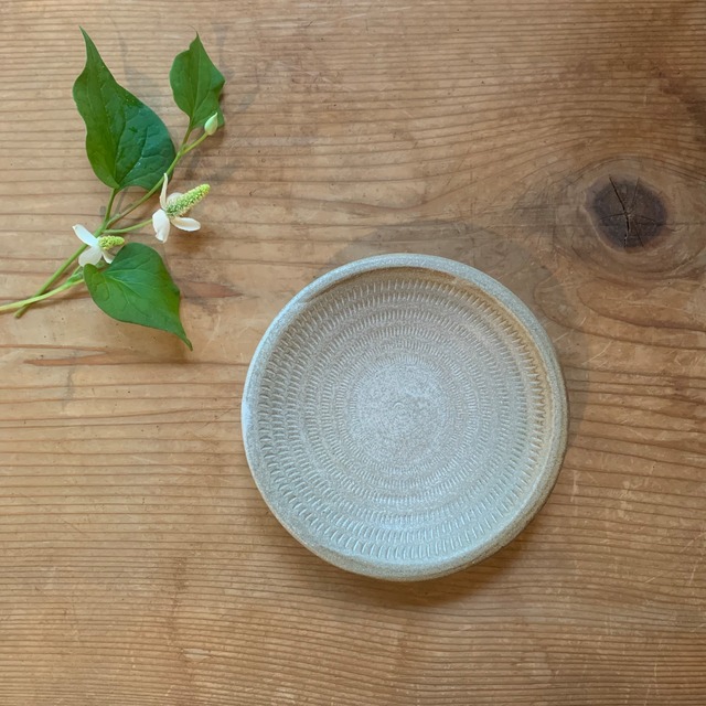 てのひらサイズのかわいい小皿。 小皿は何かと気軽に使いやすく、いくつあっても嬉しいものです。 やわらかな優しい雰囲気のグレーマット。 シンプルだけど趣深さがあります。 小さなお皿だけれど、見れば見るほど惹きつけられる世界観を持っています。 小石原焼の伝統技法であるとびかんな模様も美しく入っています。 直径:約15cm 高さ:約2.5cm 福岡県東峰村小石原で作る小石原焼。 作る人の気持ちがこもった物。 使うほどに愛着もわき、 日常がもっと豊かで心地よくなる。 ※商品に関する注意事項 商品は全て手作りのため、大きさや形、色、柄など多少異なります。 下記全てご確認の上、ご購入をお願いいたします。 ひとつとして同じものはないため、手作り特有の個性としてお楽しみいただけると幸いです。 【色斑・釉だれ】 釉薬のかかり具合や、焼く際の窯の位置等によって、色斑が発生する場合がございます。 また、器の高台の底の部分まで釉薬が付着している可能性がございますが、 使用には特に問題ございませんので、安心してご利用下さい。 【器の底のざらつき】 器の裏の釉薬がかかっていない部分は、多少のざらつき、欠けている場合がございますが、 使用には特に問題ございません。 【サイズの誤差】 陶器は焼成する際に、収縮するため、大きさや重さが多少異なる場合がございます。 【色について】 お使いの端末や閲覧環境、画像処理の工程により、色味や質感が多少異なって見えることがございます。 【貫入(かんにゅう)】 器の肌に細かいひびのような模様は貫入といって、陶器の表面の小さな隙間にお茶やコーヒー、 お料理の色素が入り込んでできる、焼き物独特のもの。 使い込み器を育てるという意味では、愛着がわき長所でもあります。 【お取り扱いについて】 電子レンジ:○ 直火:× 食洗機:○ ※機種によっては水流が強くて、器同士がガチャガチャあたると器がかけてしまう事があるので、 気になる方は手洗いをおすすめします。