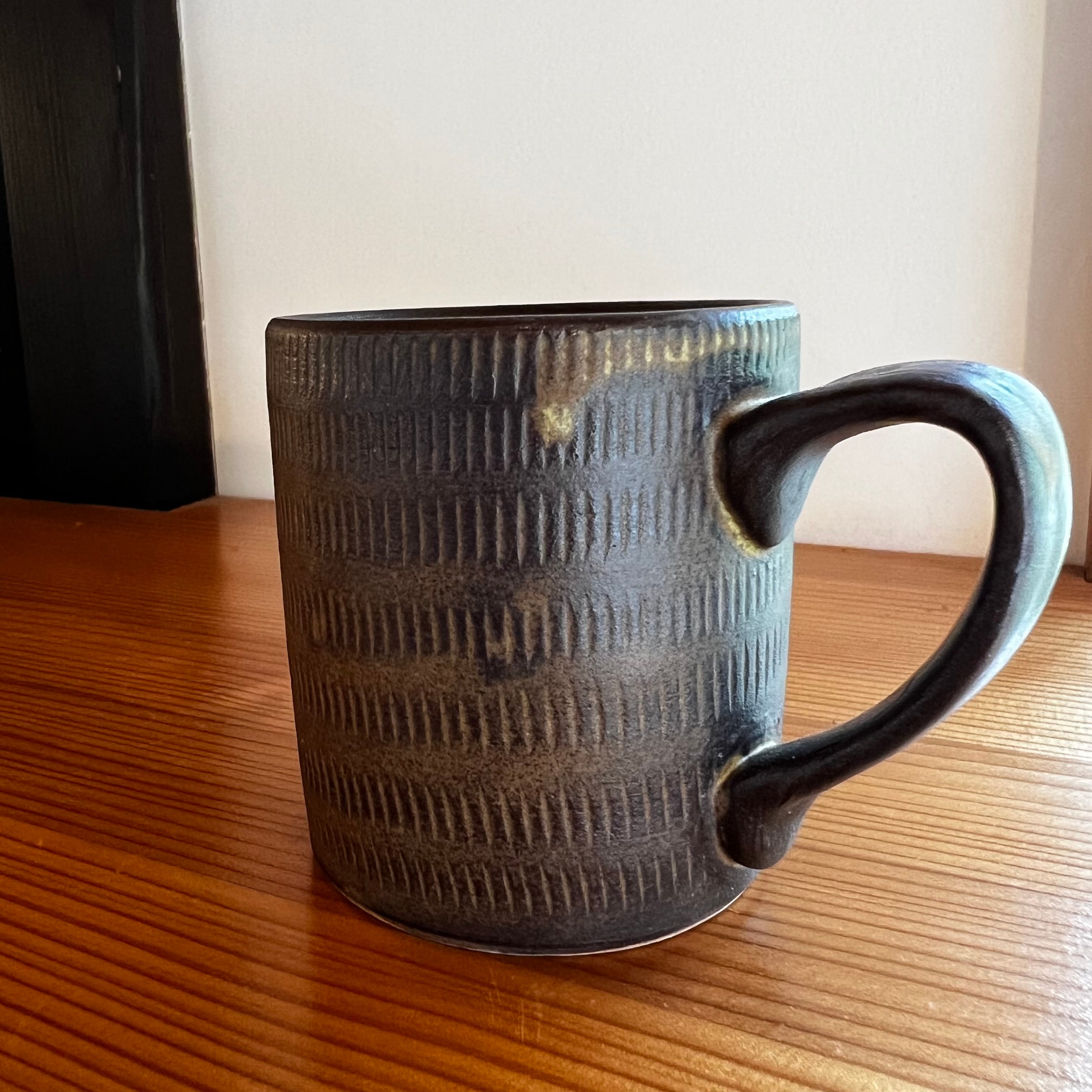器の肌に細かいひびのような模様は貫入といって、陶器の表面の小さな隙間にお茶やコーヒー、