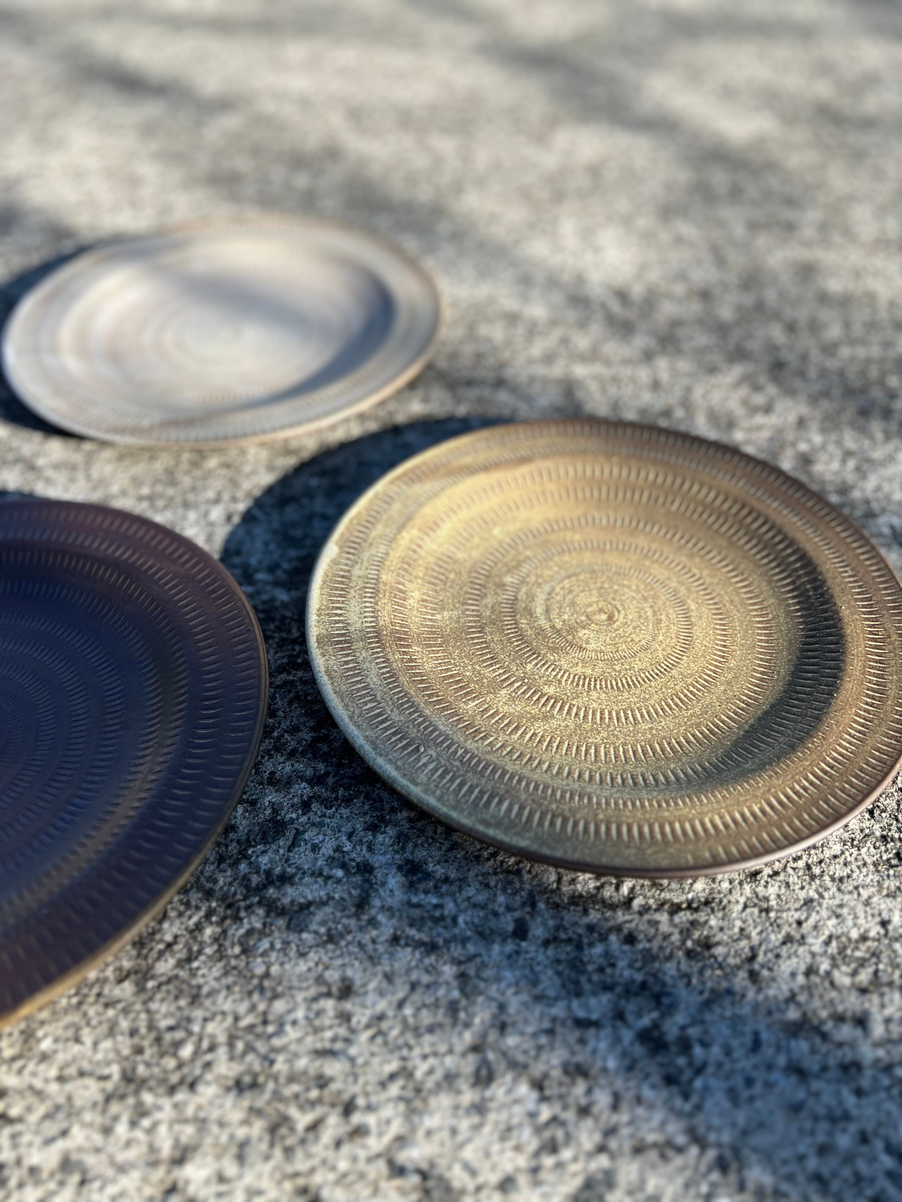 土ものの優しい温もりも感じられ、とびかんな模様や手書きのドット、白い刷毛塗りの塗り跡など、手作りの魅力も楽しめます。