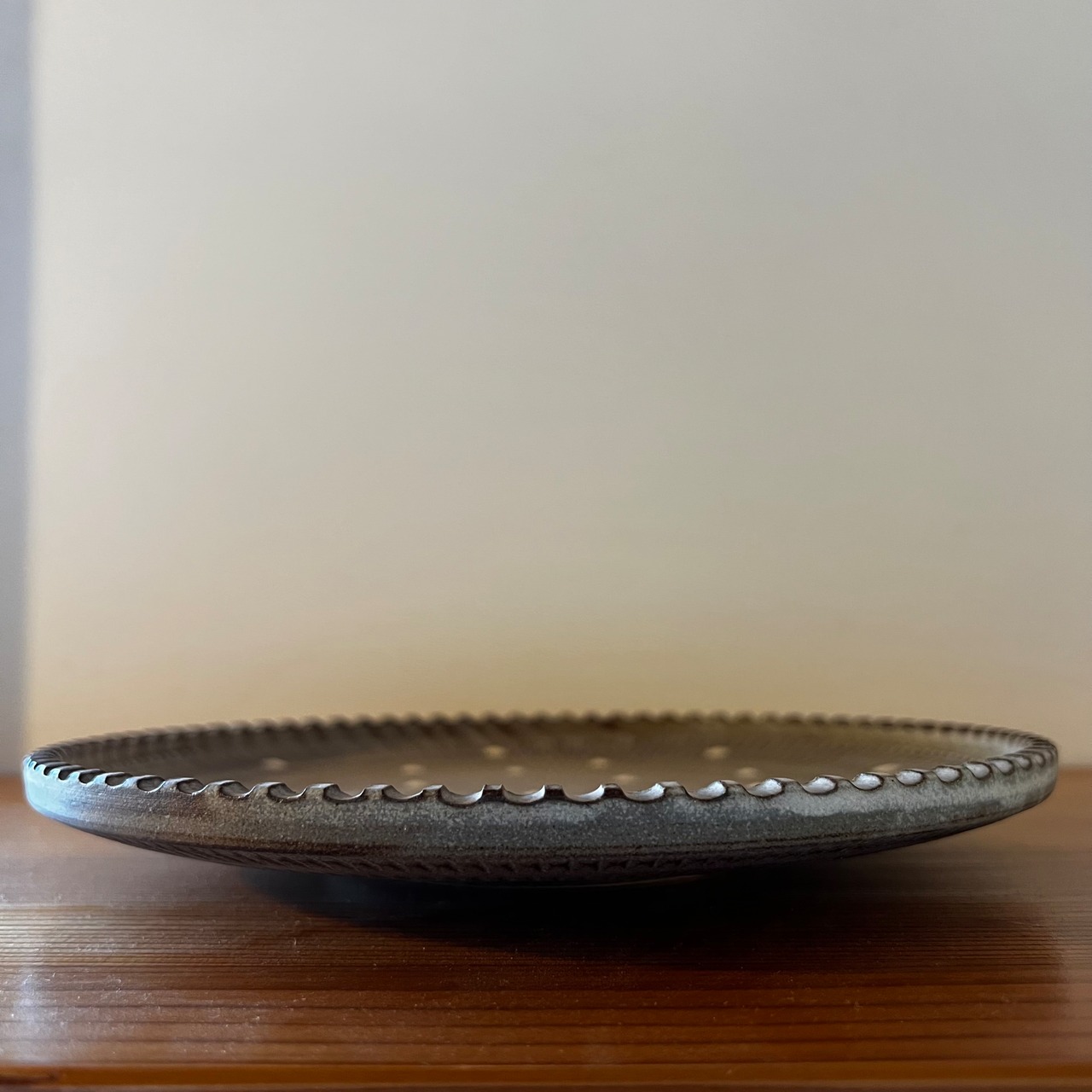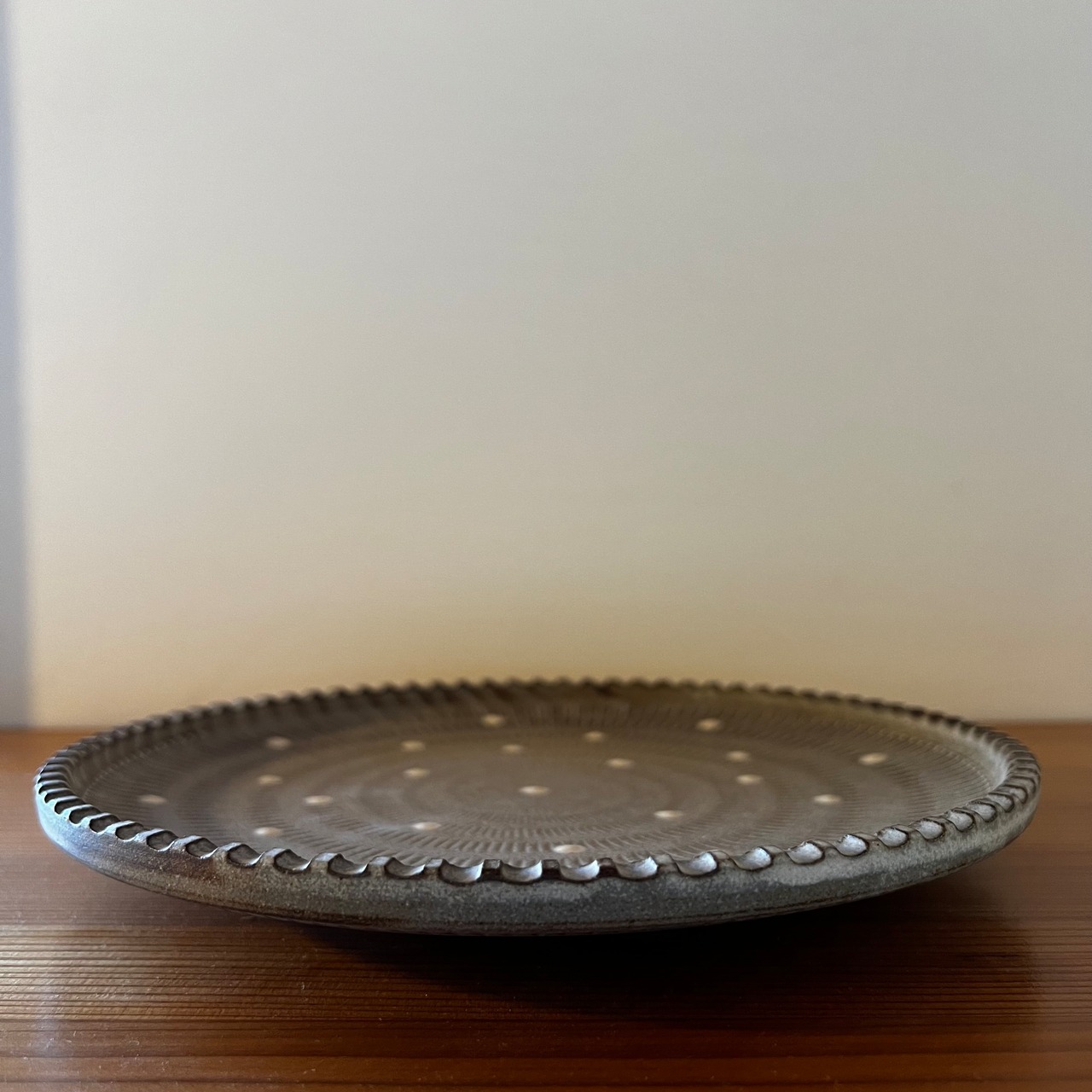 平らなお皿のふちが少しだけ立ち上がった、盛り付けしやすいプレートです。
