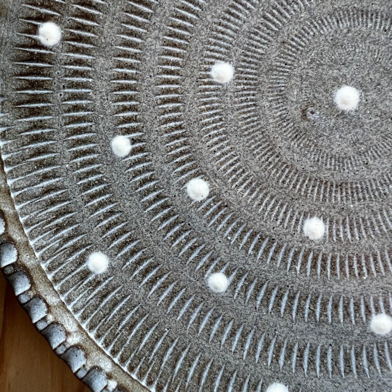 フチにぐるりとしのぎの彫り模様が入り、温かみのある食卓に。
