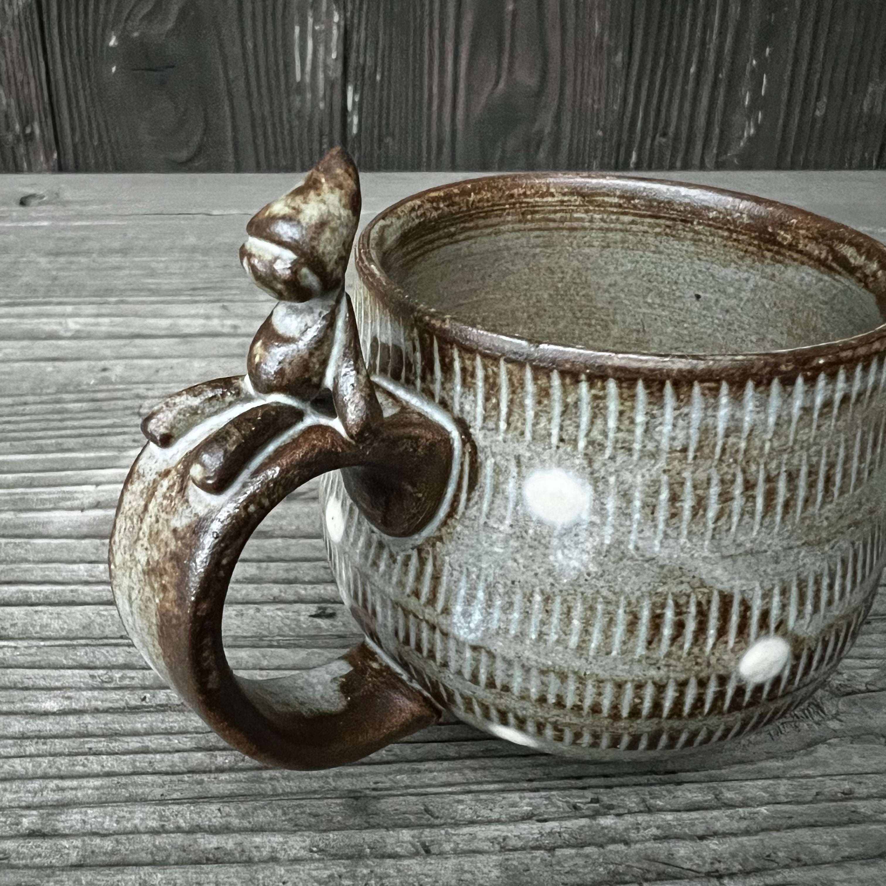 器の肌に細かいひびのような模様は貫入といって、陶器の表面の小さな隙間にお茶やコーヒー、