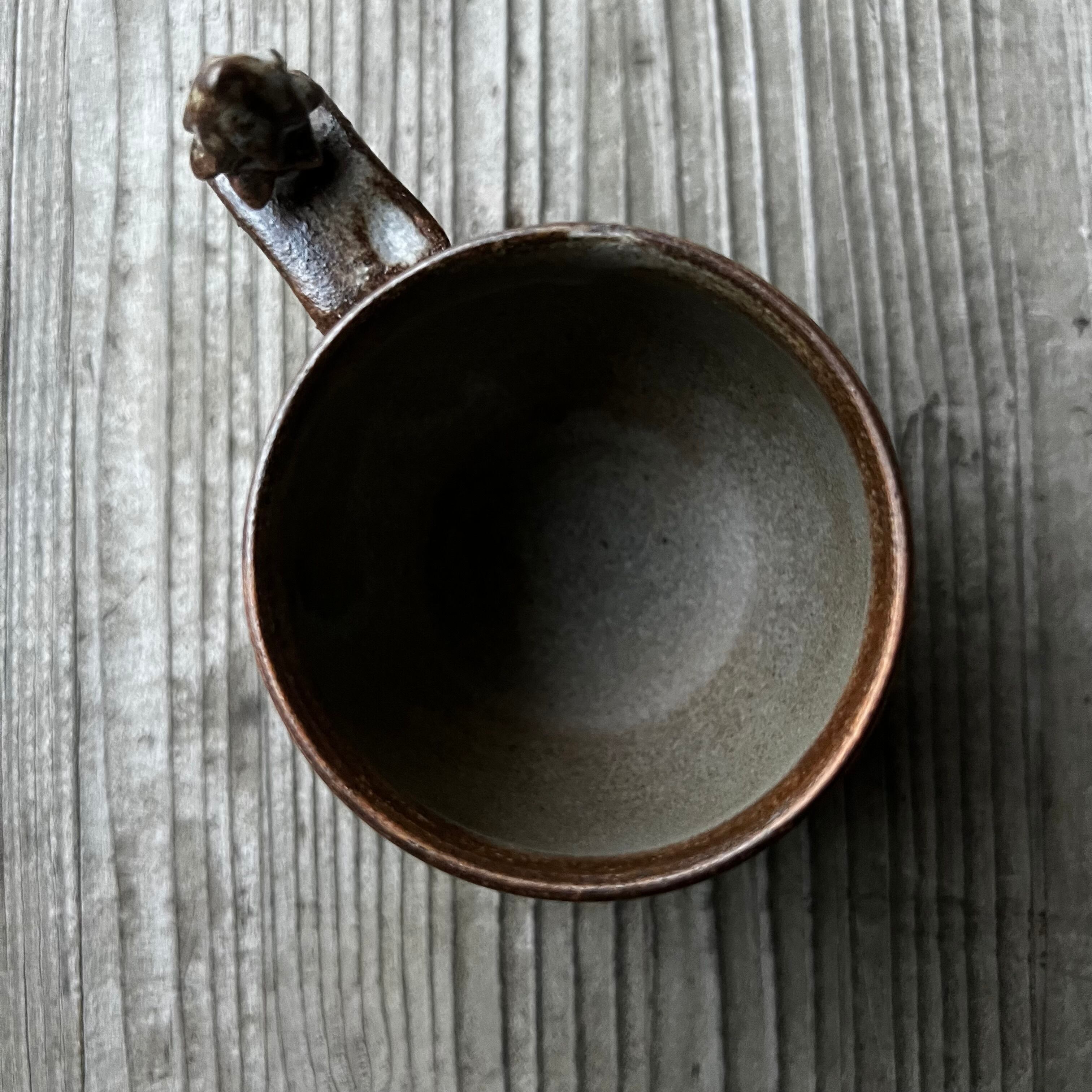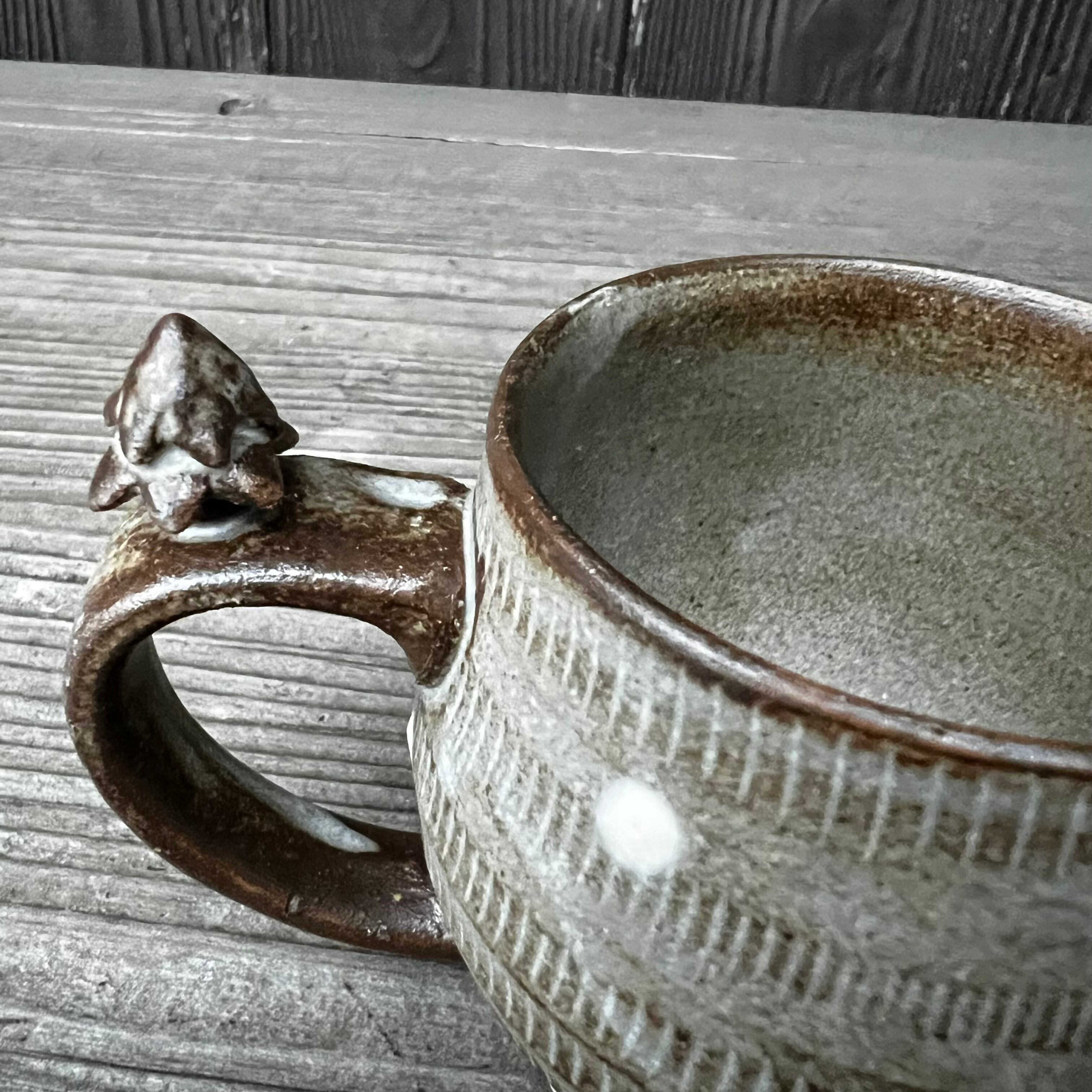 器の肌に細かいひびのような模様は貫入といって、陶器の表面の小さな隙間にお茶やコーヒー、