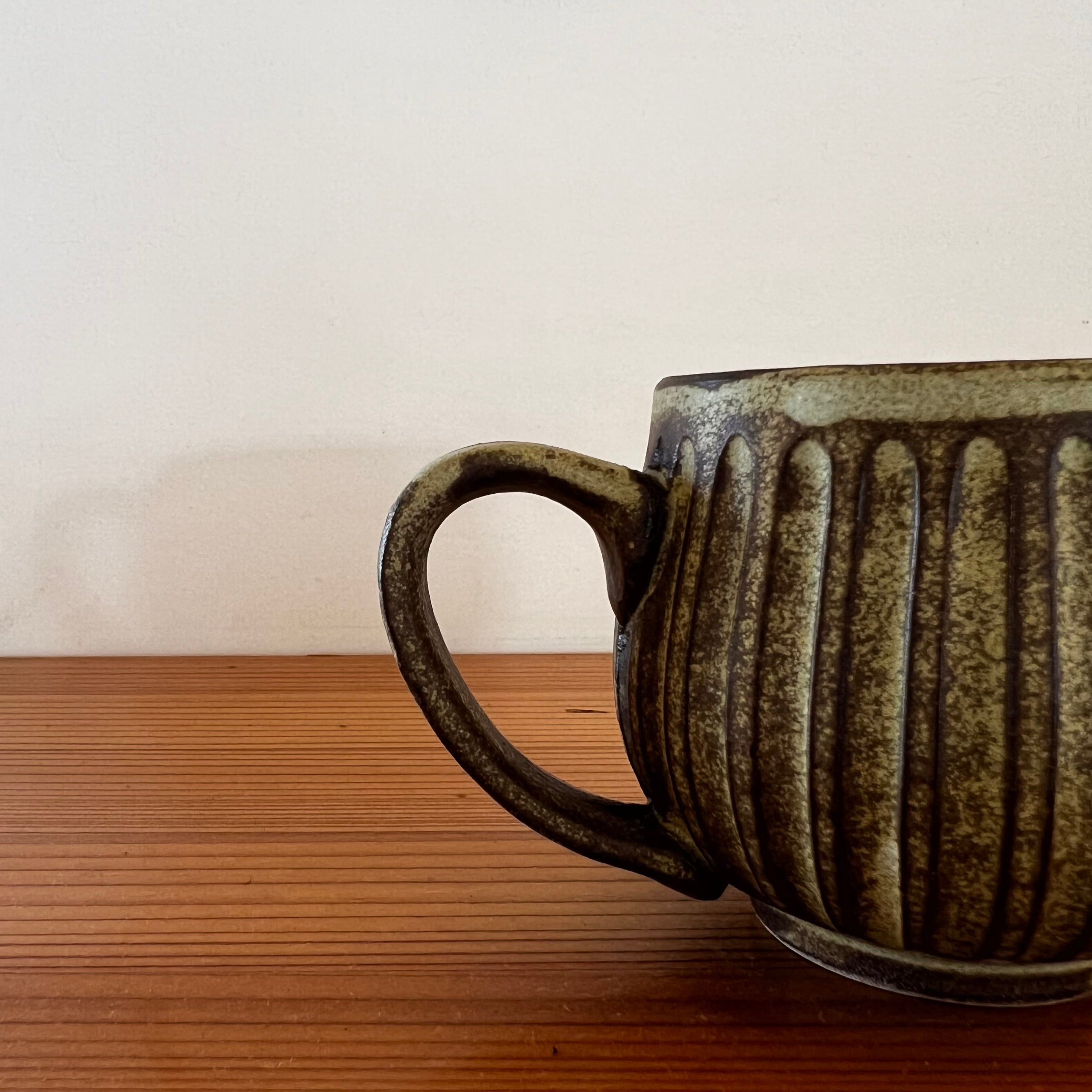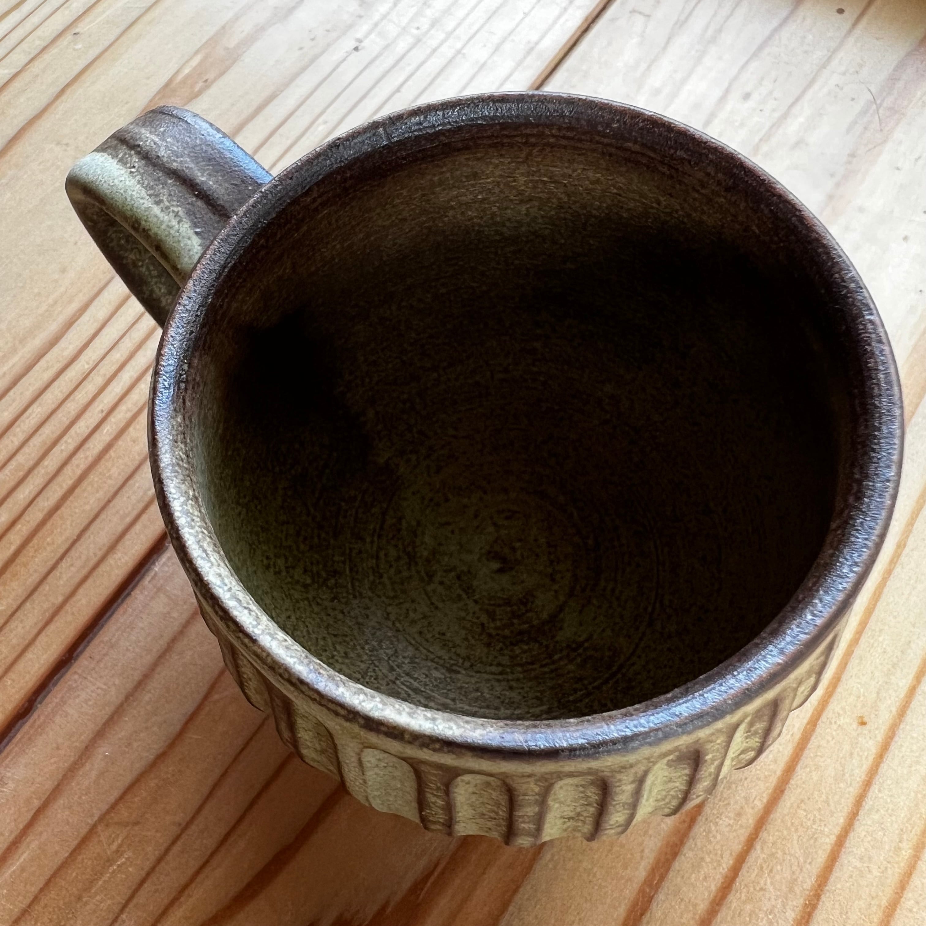 器の肌に細かいひびのような模様は貫入といって、陶器の表面の小さな隙間にお茶やコーヒー、