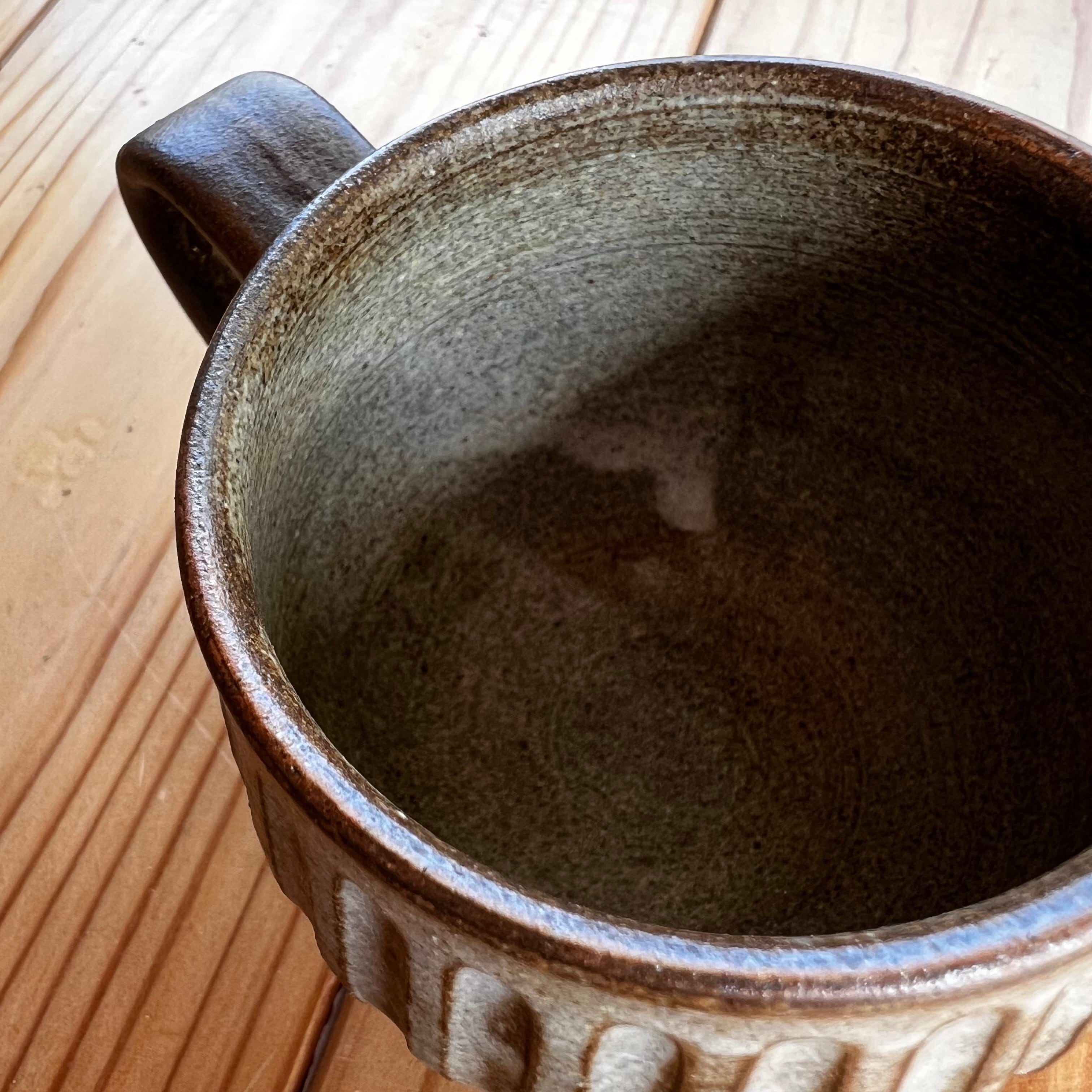 器の肌に細かいひびのような模様は貫入といって、陶器の表面の小さな隙間にお茶やコーヒー、