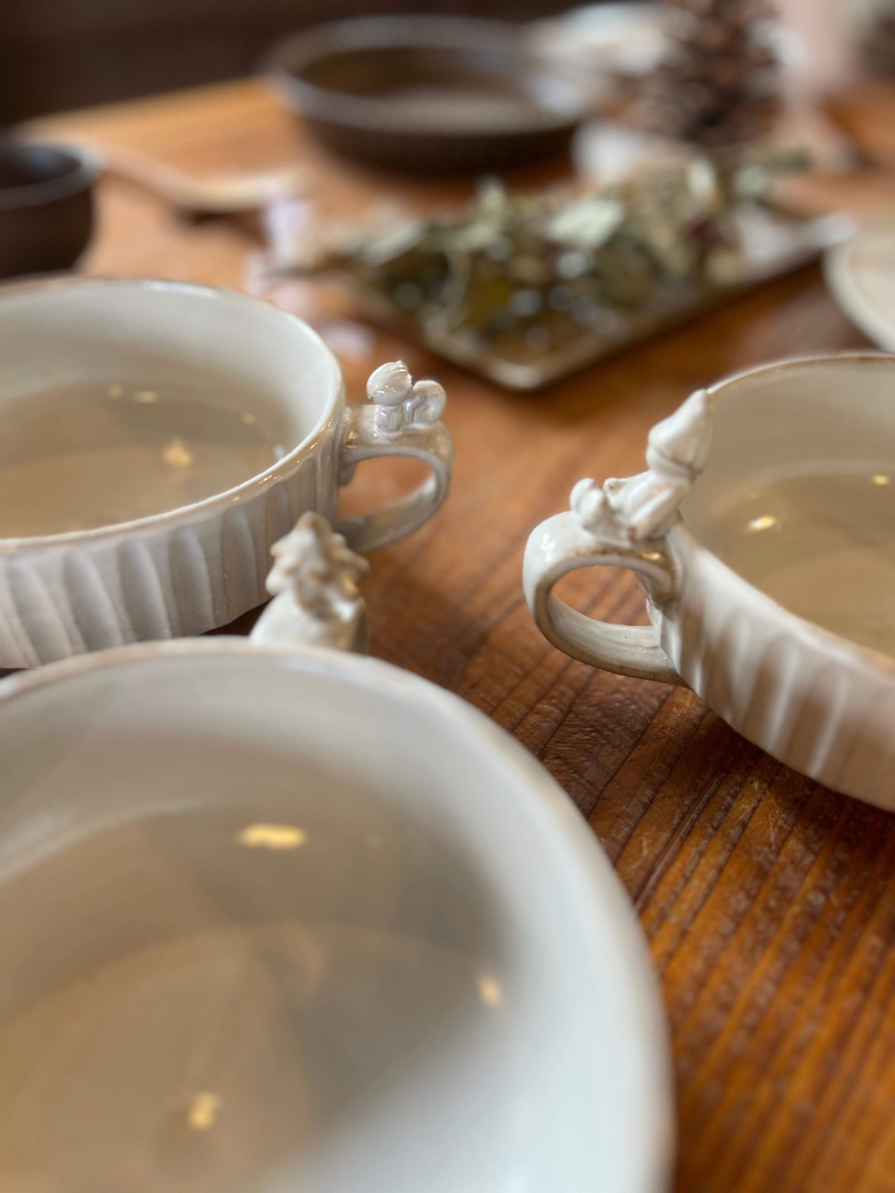 しのぎスープカップ ノエル*森の木*アンティークホワイト