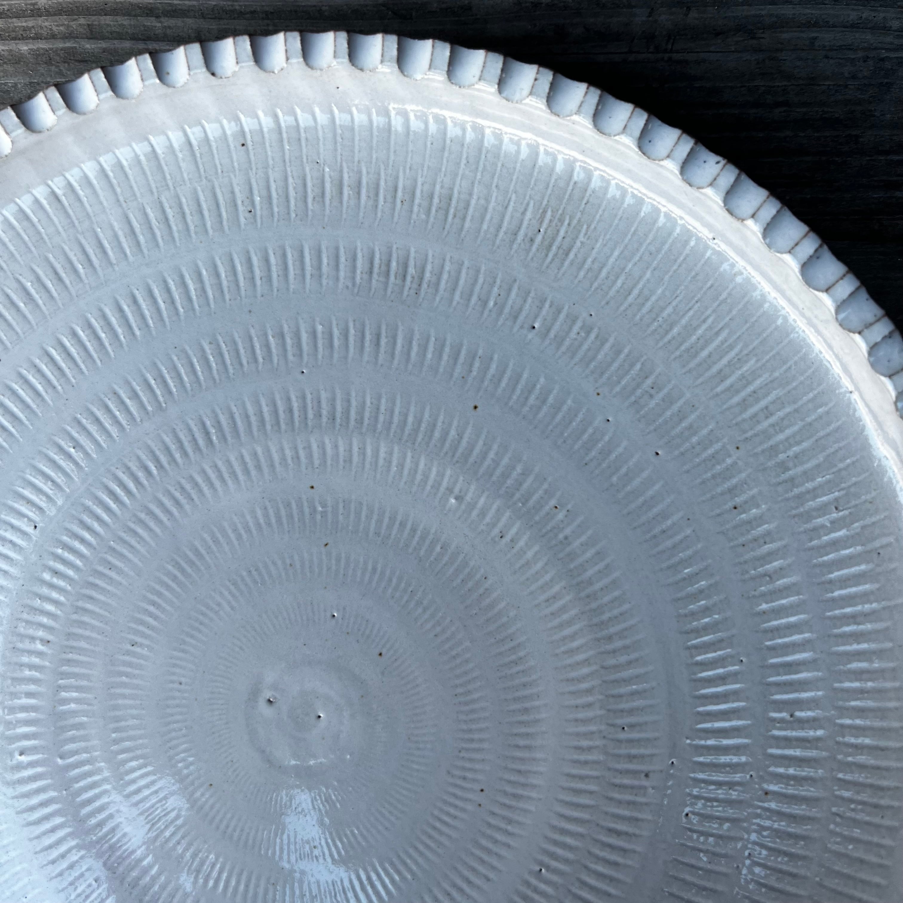 とびかんな の模様が全面に入った、小石原焼の手仕事を楽しめるプレートです。