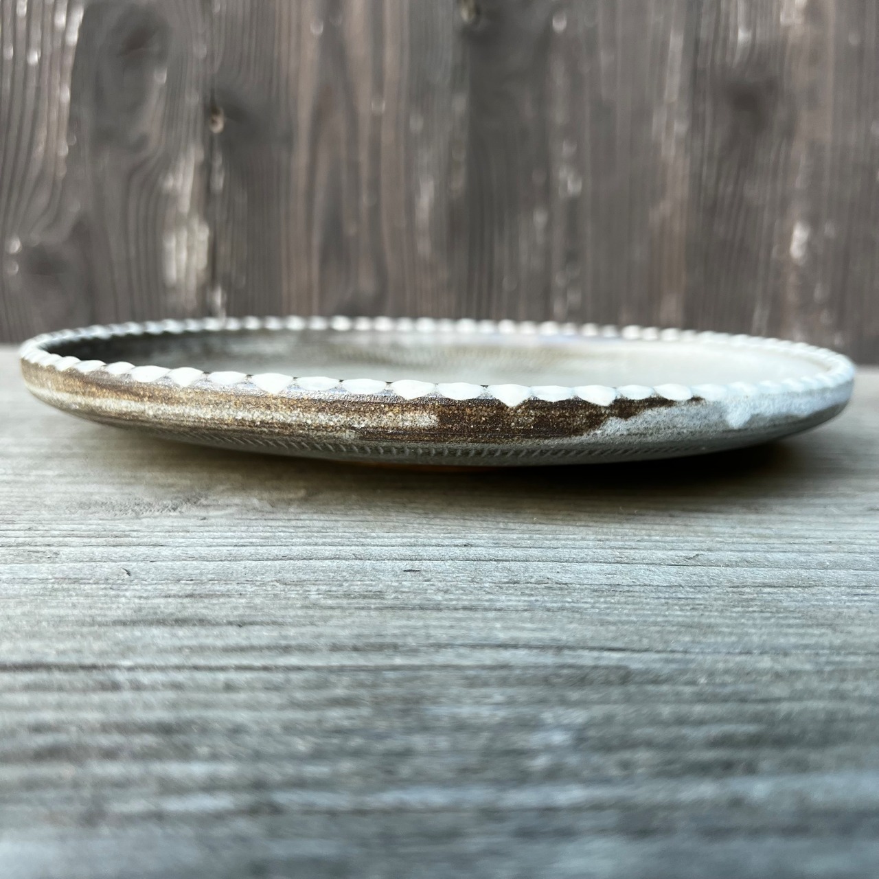 平らなお皿のふちが少しだけ立ち上がった、盛り付けしやすいプレートです。