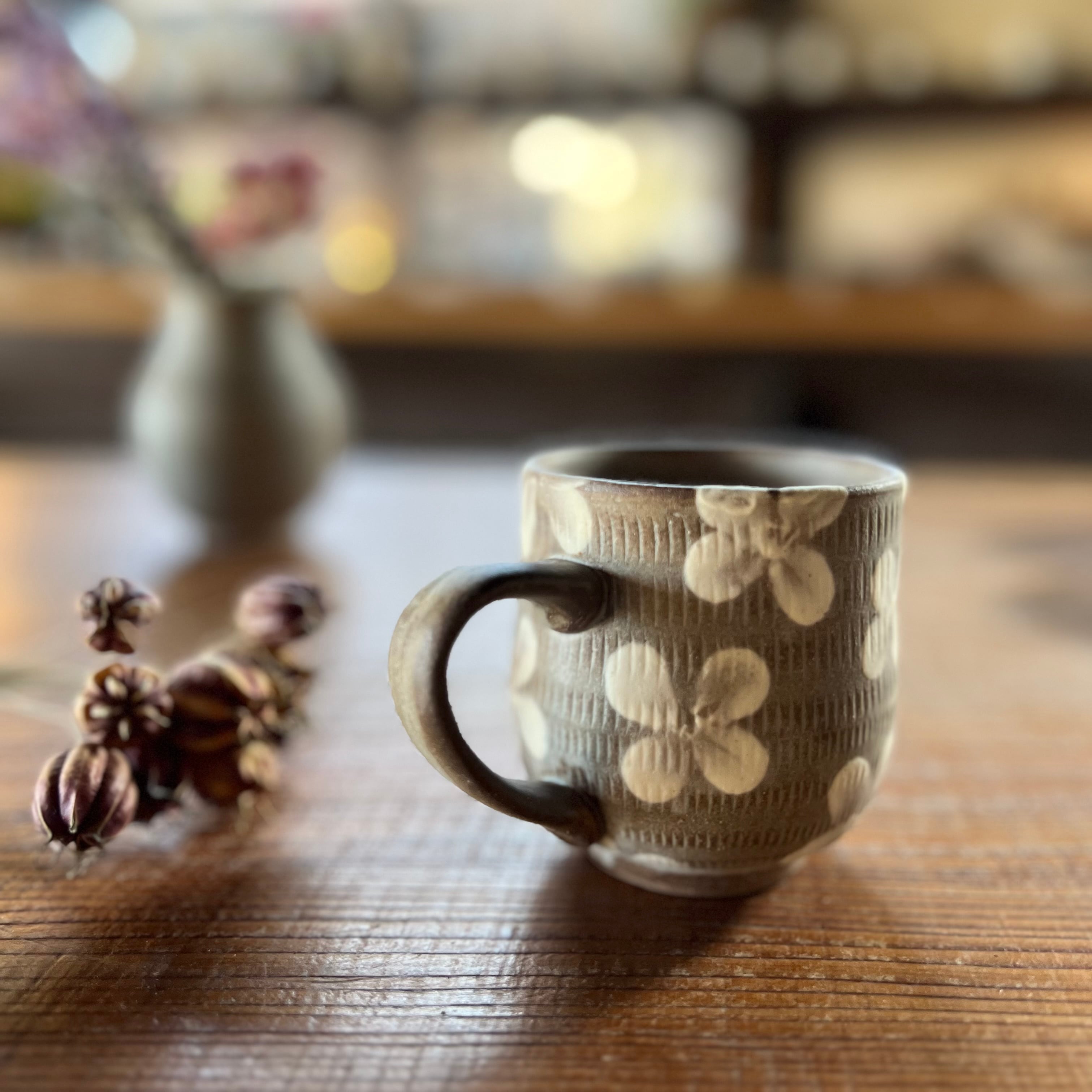 チューリップが花開くような、かわいいフォルムのマグカップです。