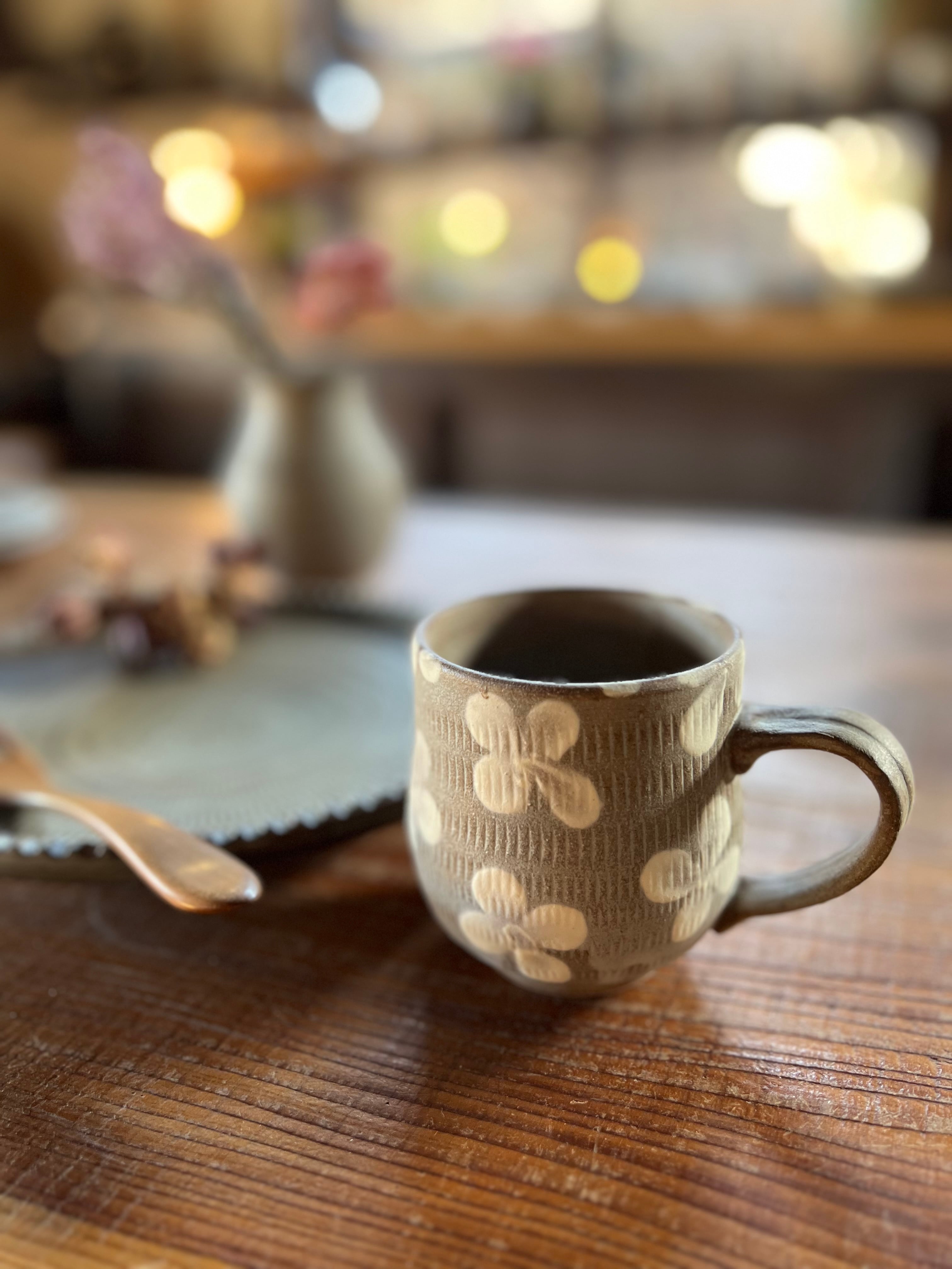 器の肌に細かいひびのような模様は貫入といって、陶器の表面の小さな隙間にお茶やコーヒー、