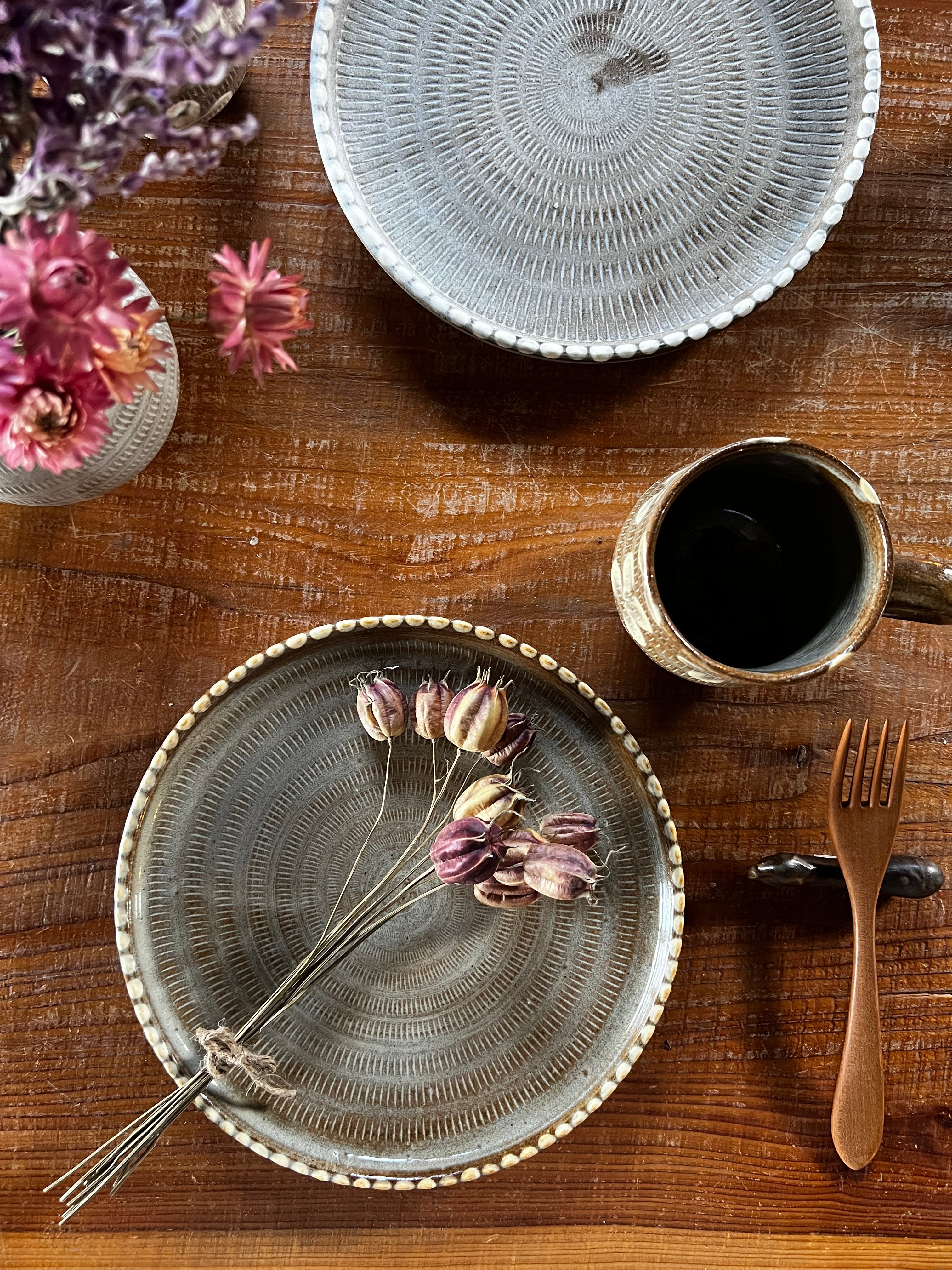 陶器は焼成する際に、収縮するため、大きさや重さが多少異なる場合がございます。