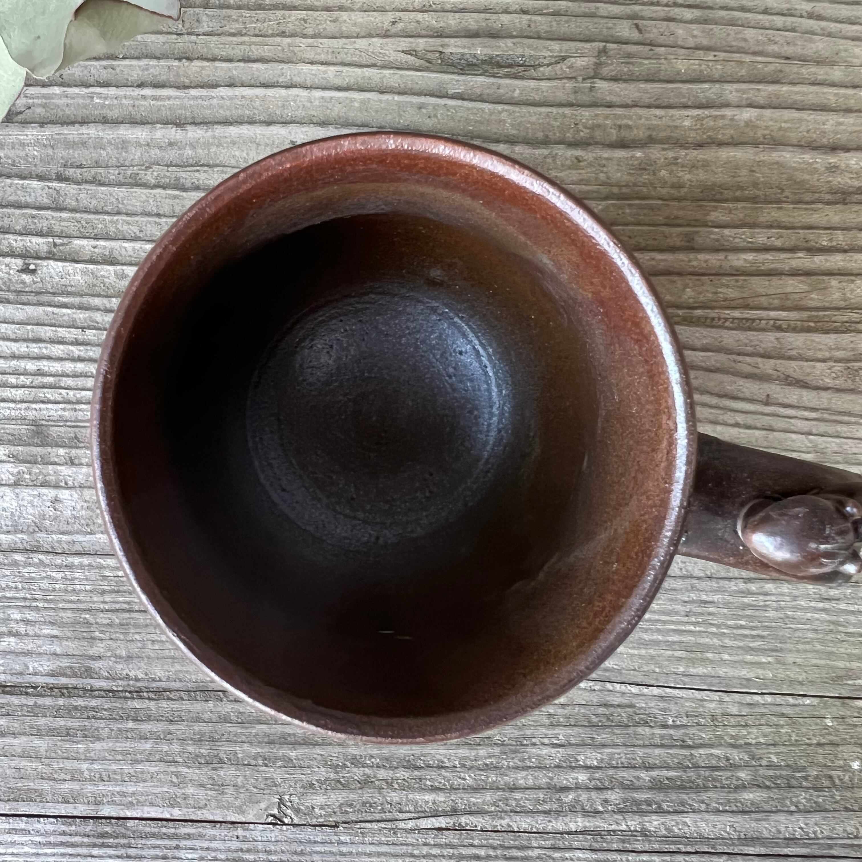 器の肌に細かいひびのような模様は貫入といって、陶器の表面の小さな隙間にお茶やコーヒー、