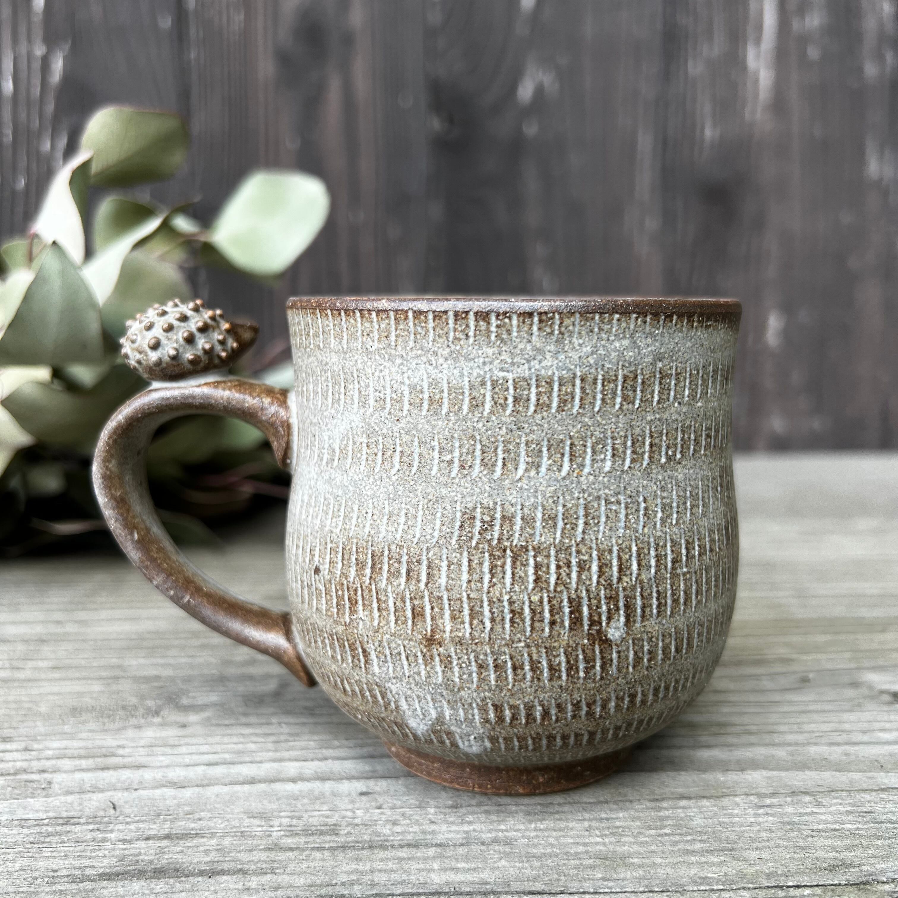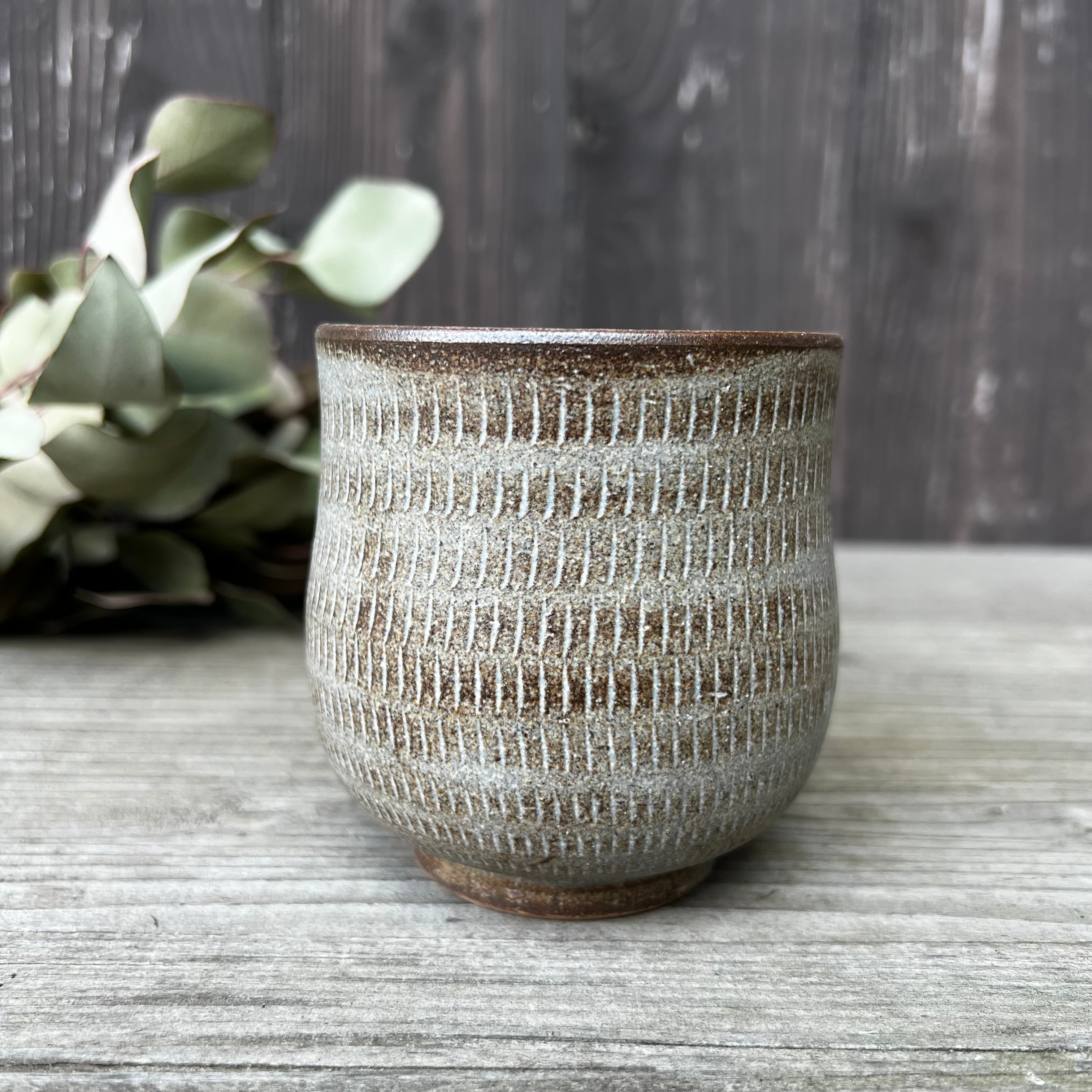 器の肌に細かいひびのような模様は貫入といって、陶器の表面の小さな隙間にお茶やコーヒー、