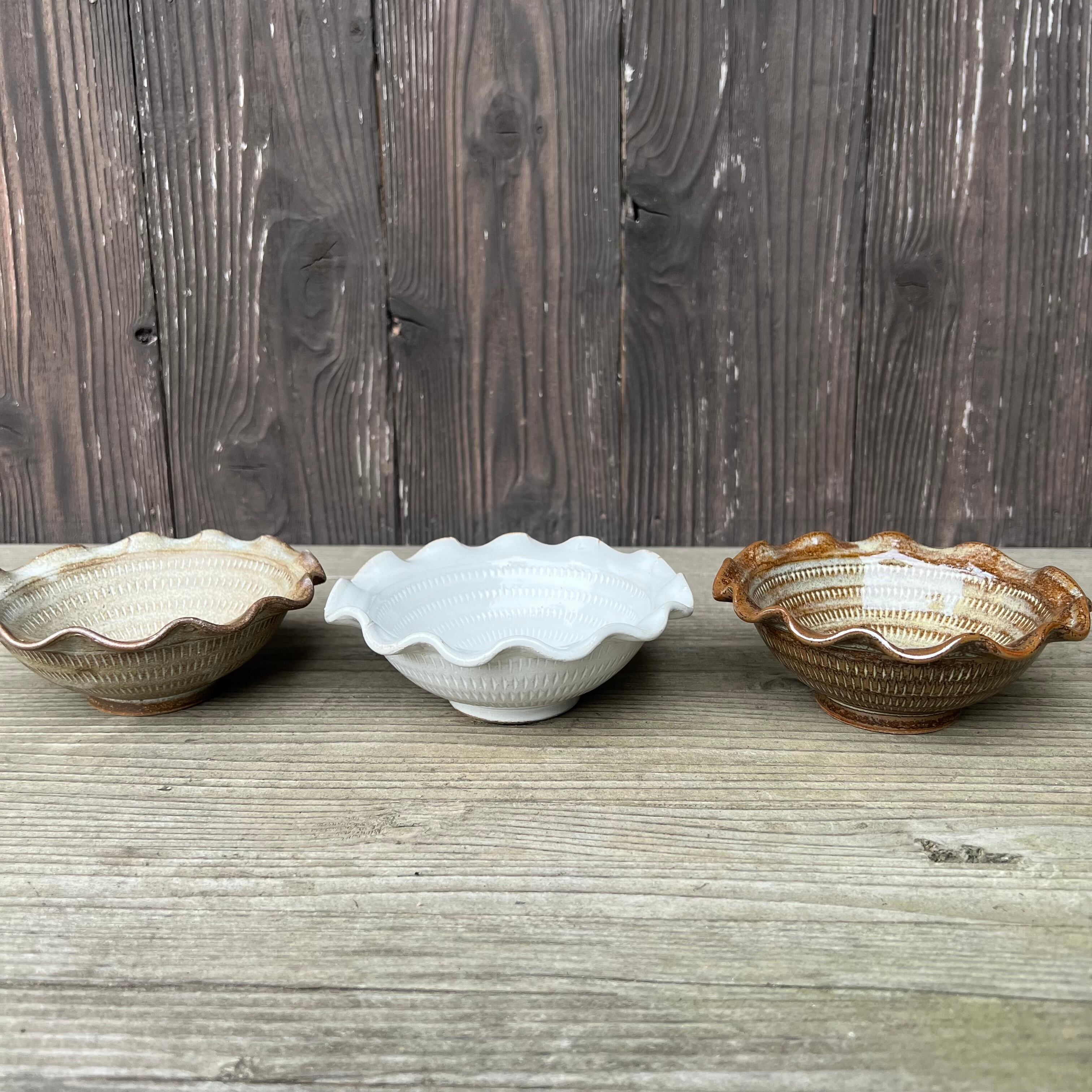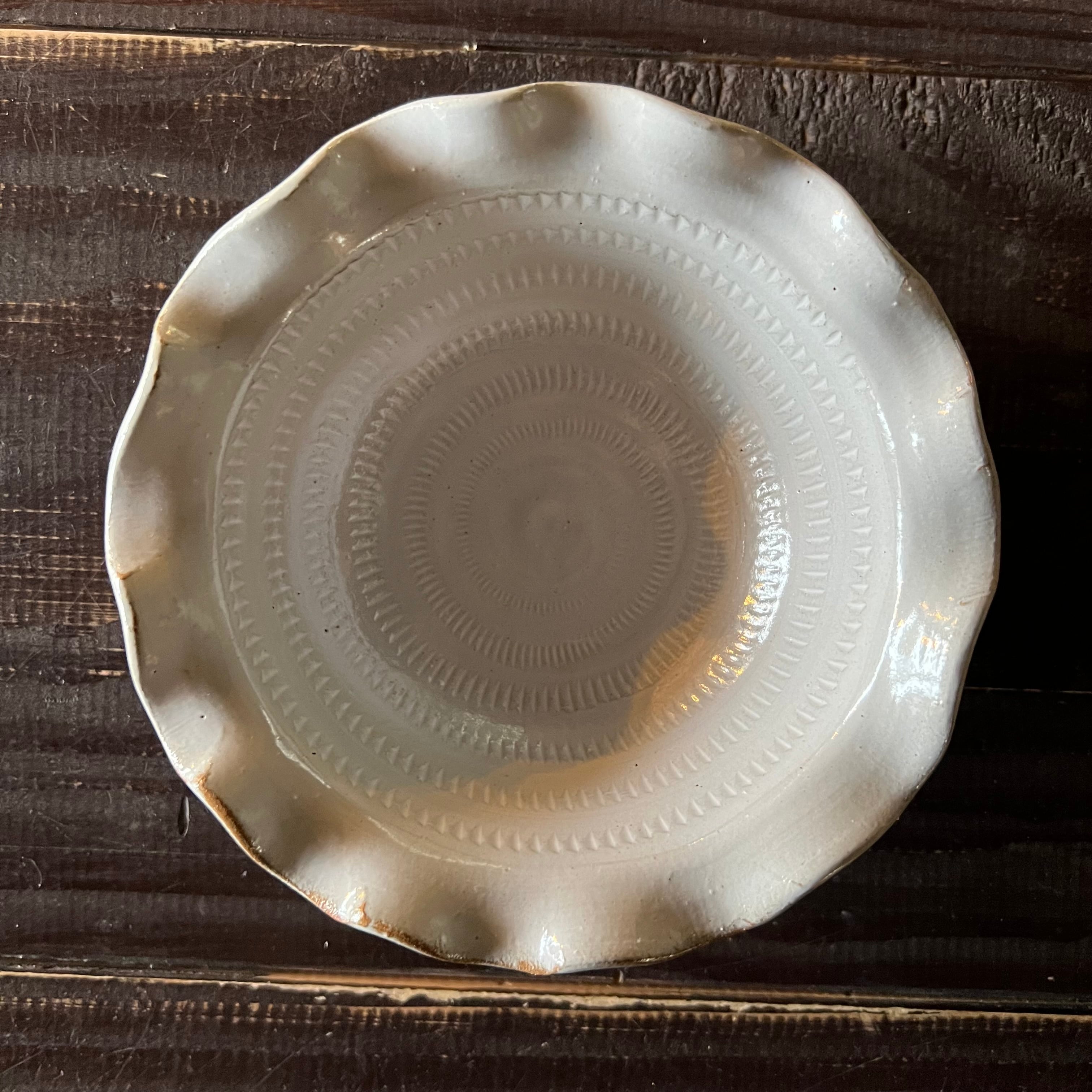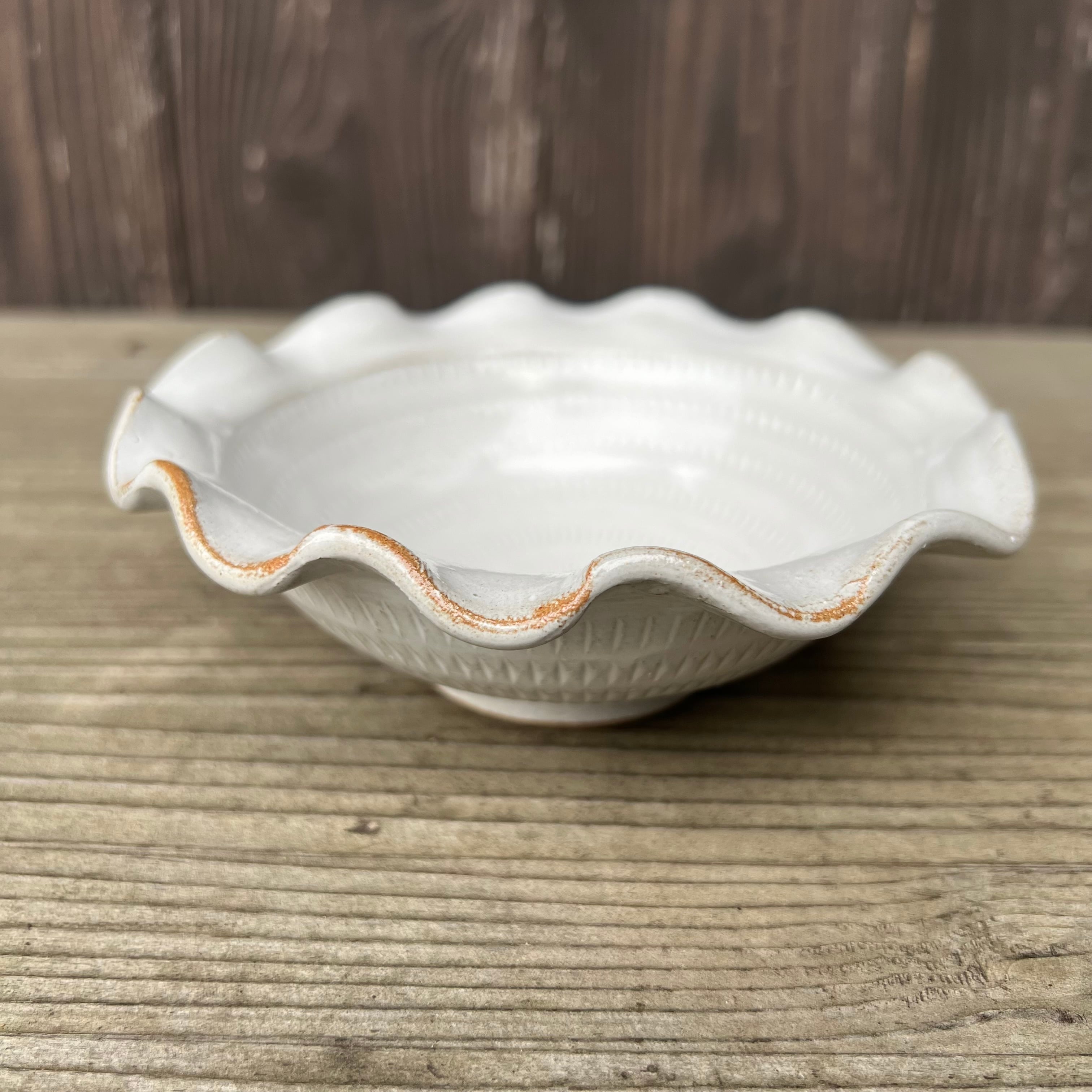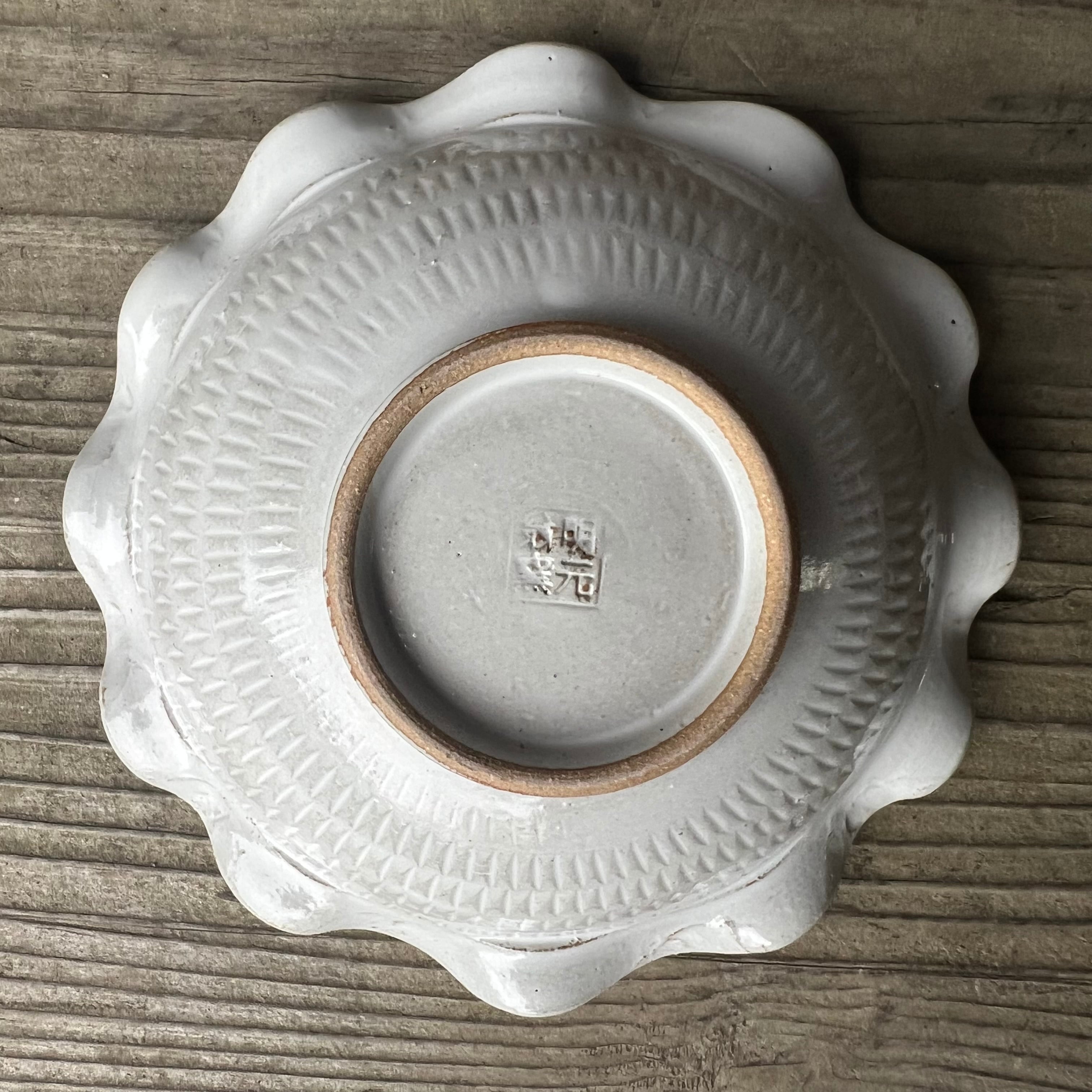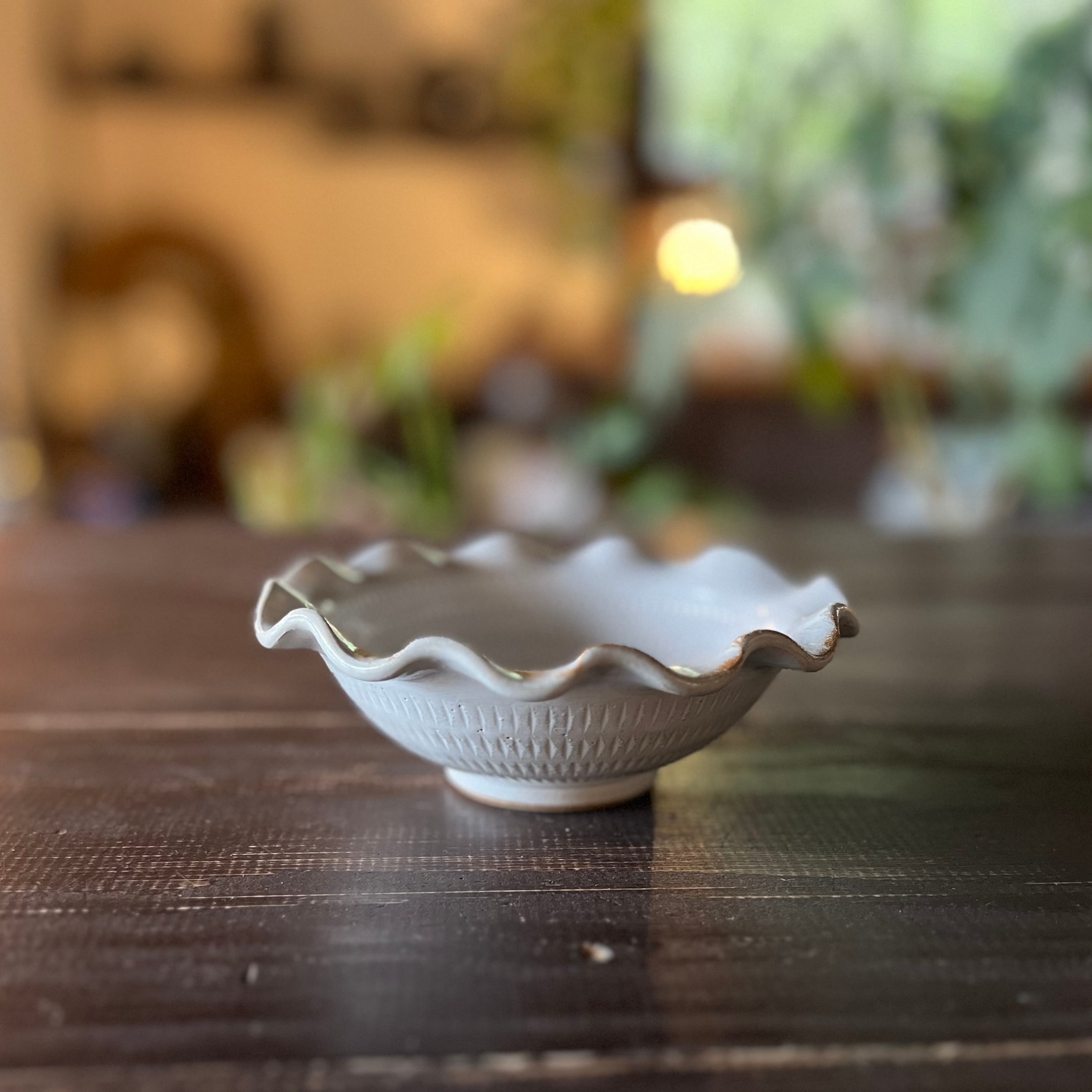 ふちがふわりと波打つ、フリルのような縁が印象的な小鉢です。