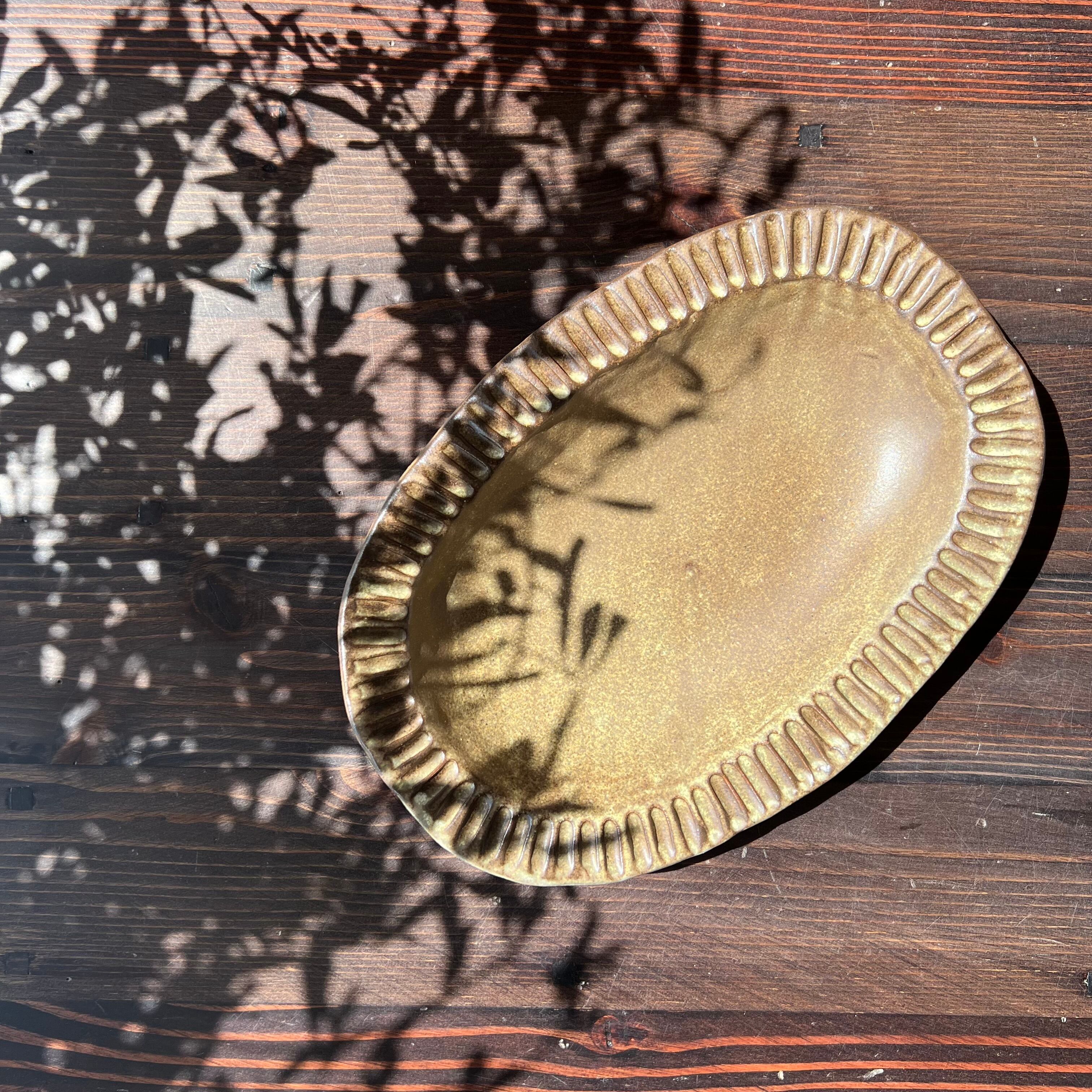 しのぎ楕円皿(大)*黄*マット