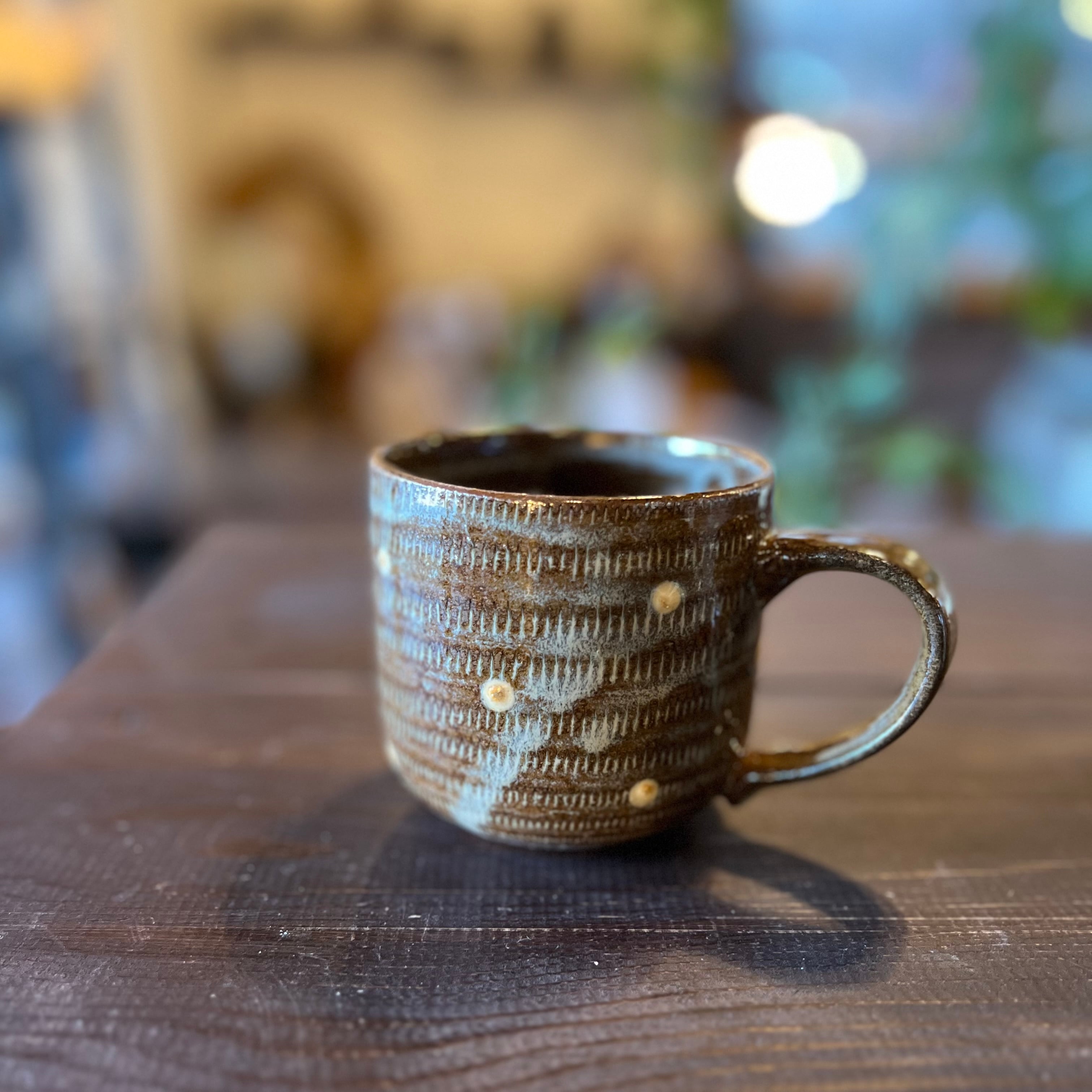 器の肌に細かいひびのような模様は貫入といって、陶器の表面の小さな隙間にお茶やコーヒー、