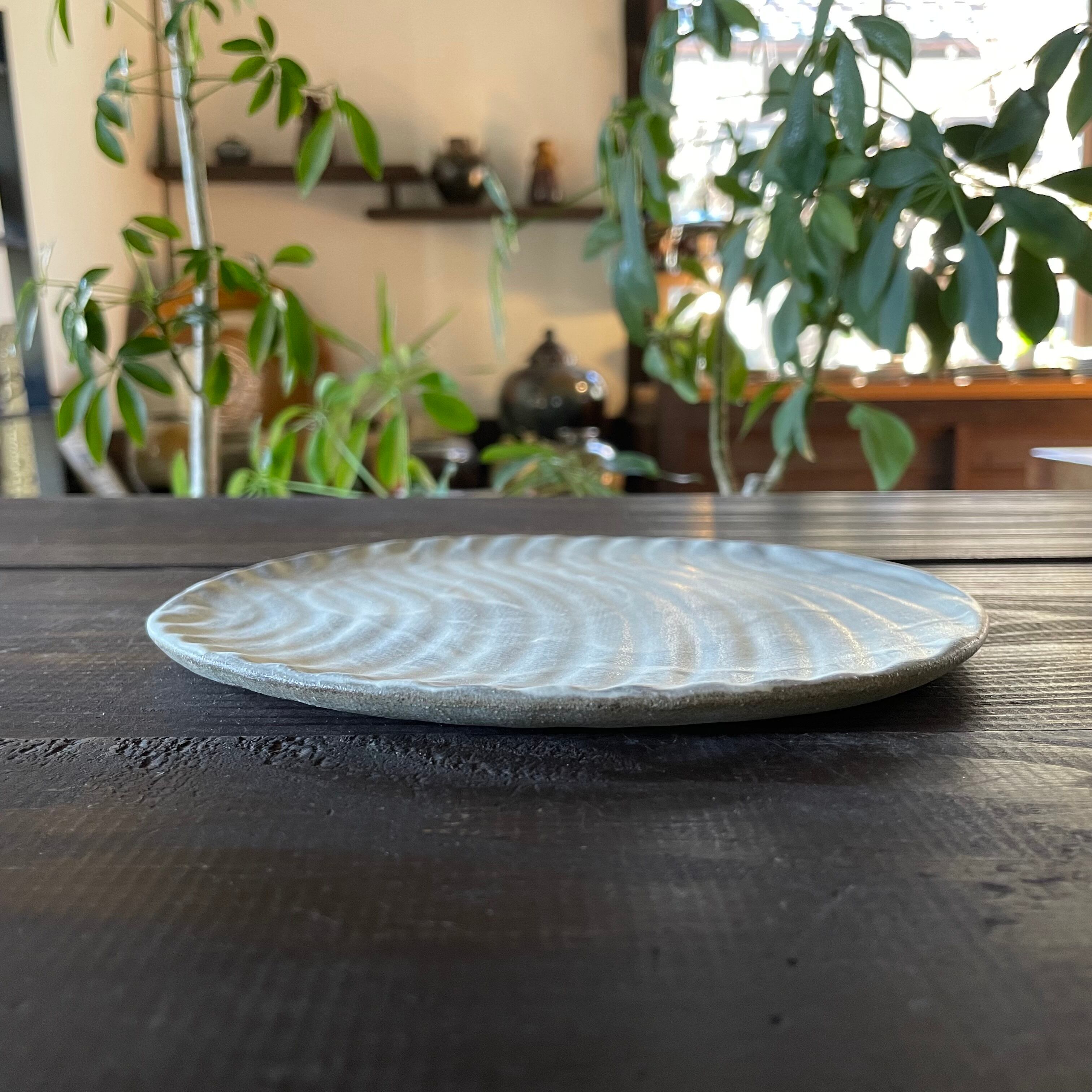 水面にそよ風が吹いたような、波模様の平皿。