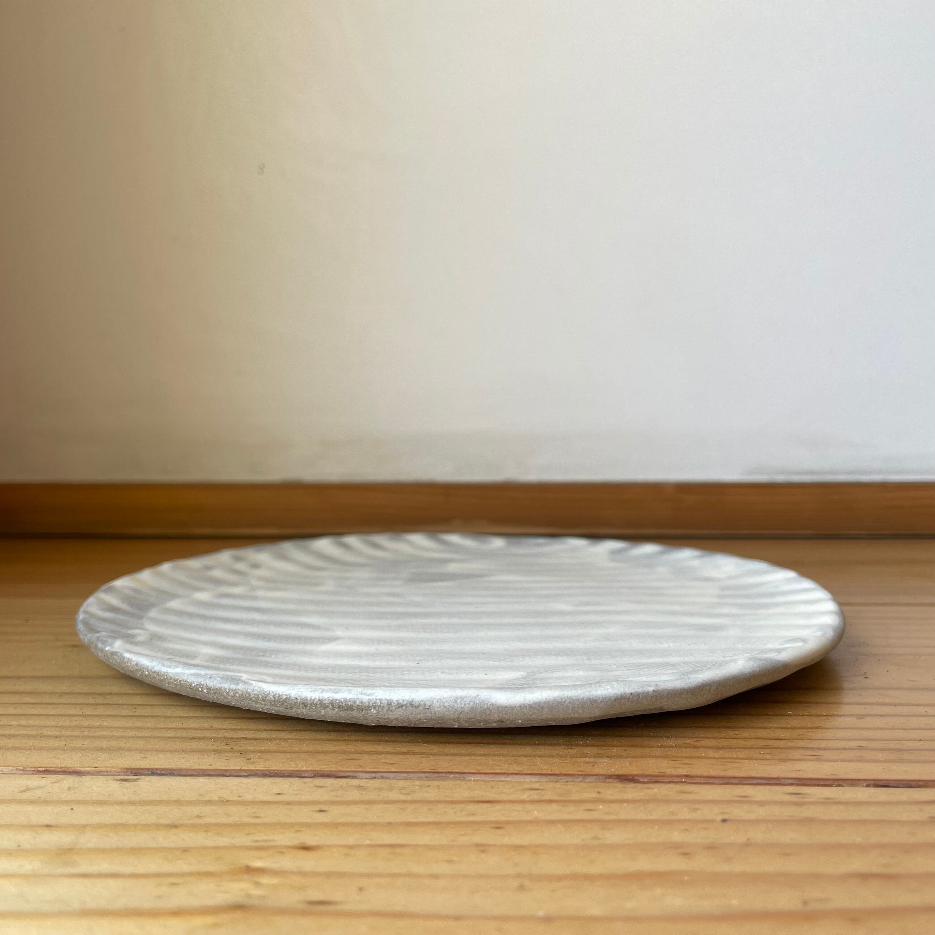 波紋丸皿*刷毛塗り白*マット