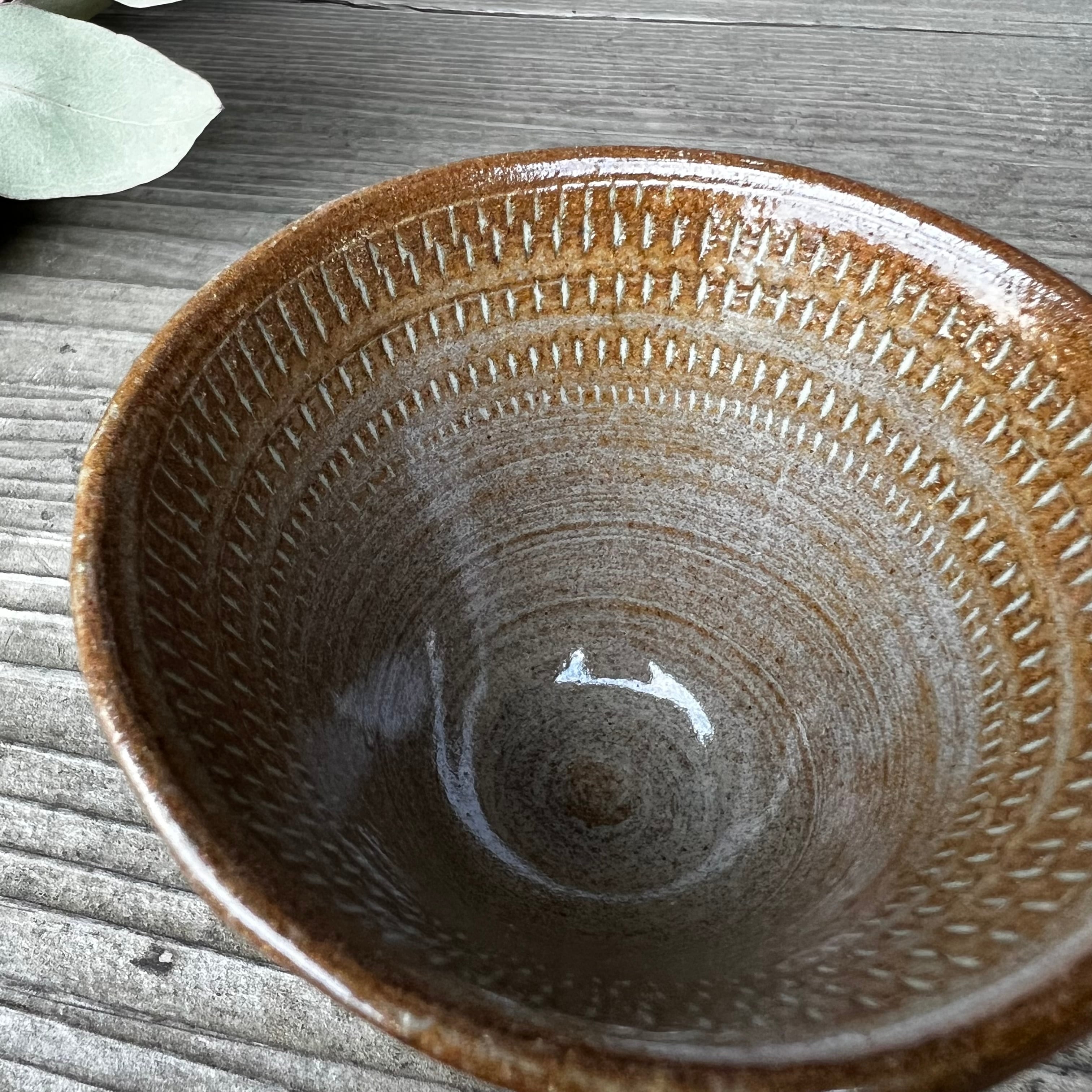 器の肌に細かいひびのような模様は貫入といって、陶器の表面の小さな隙間にお茶やコーヒー、