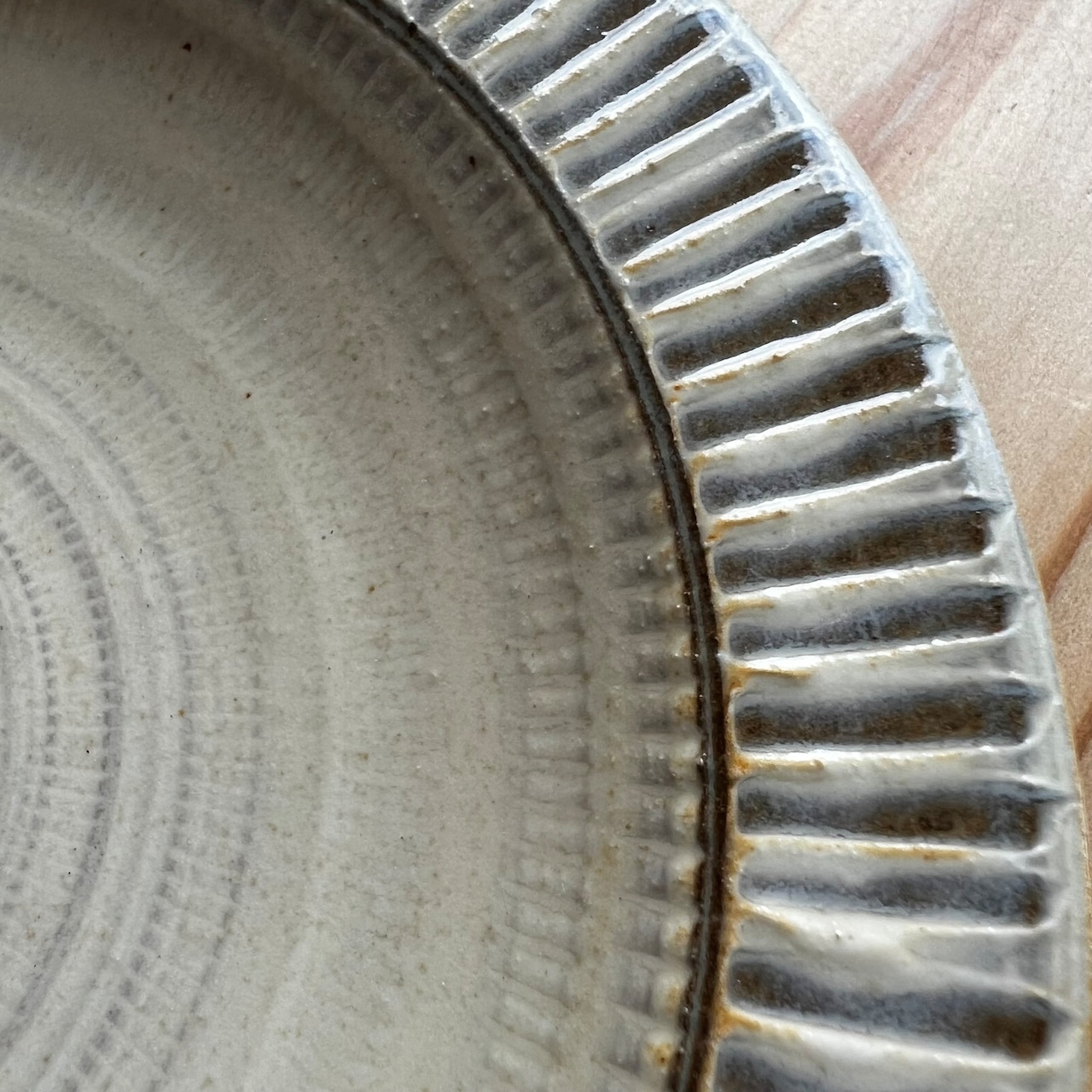フチにはこれまた小石原焼の伝統技法のひとつ、「刷毛目」を施しました。