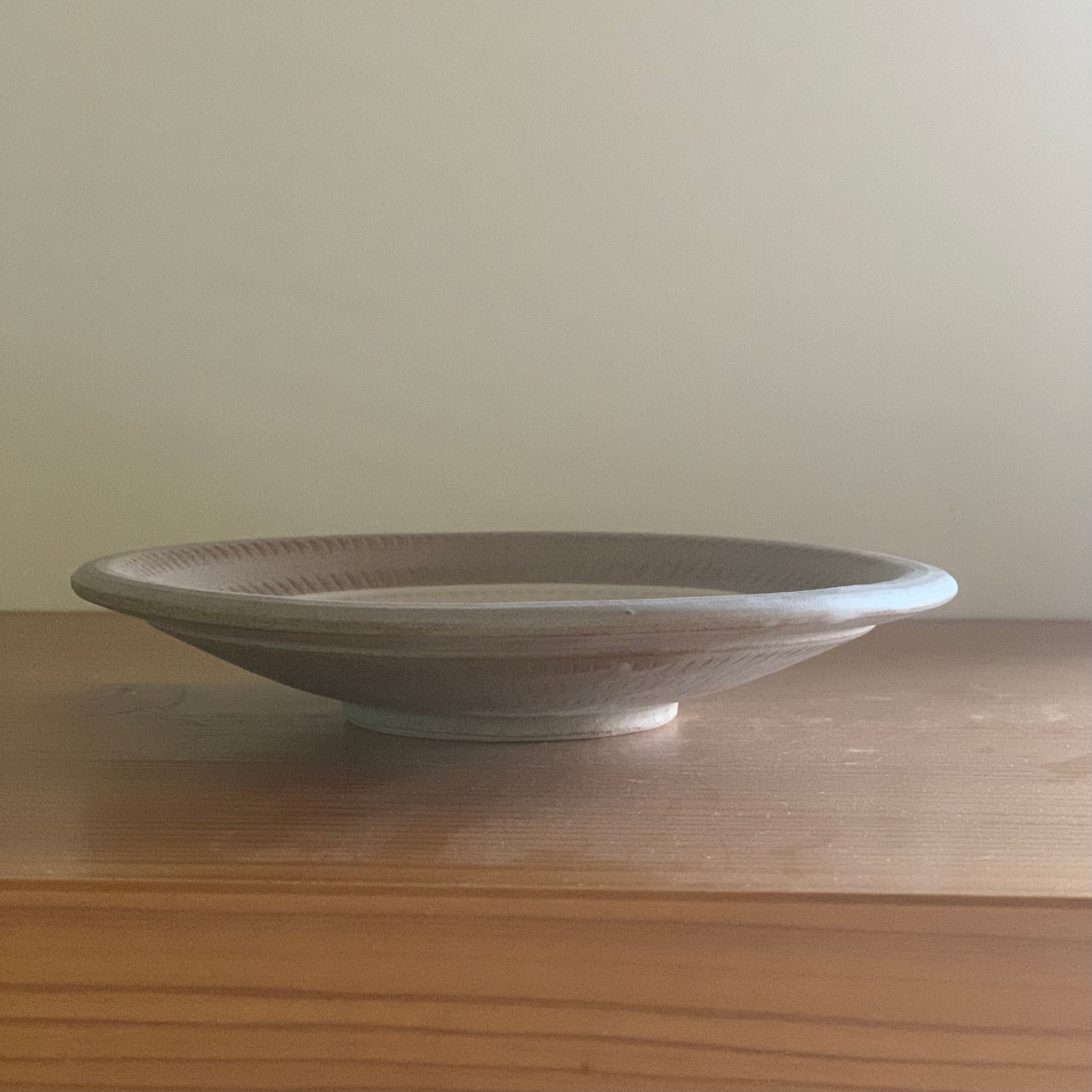 刷毛でお皿の中心に白化粧したツートン 模様。