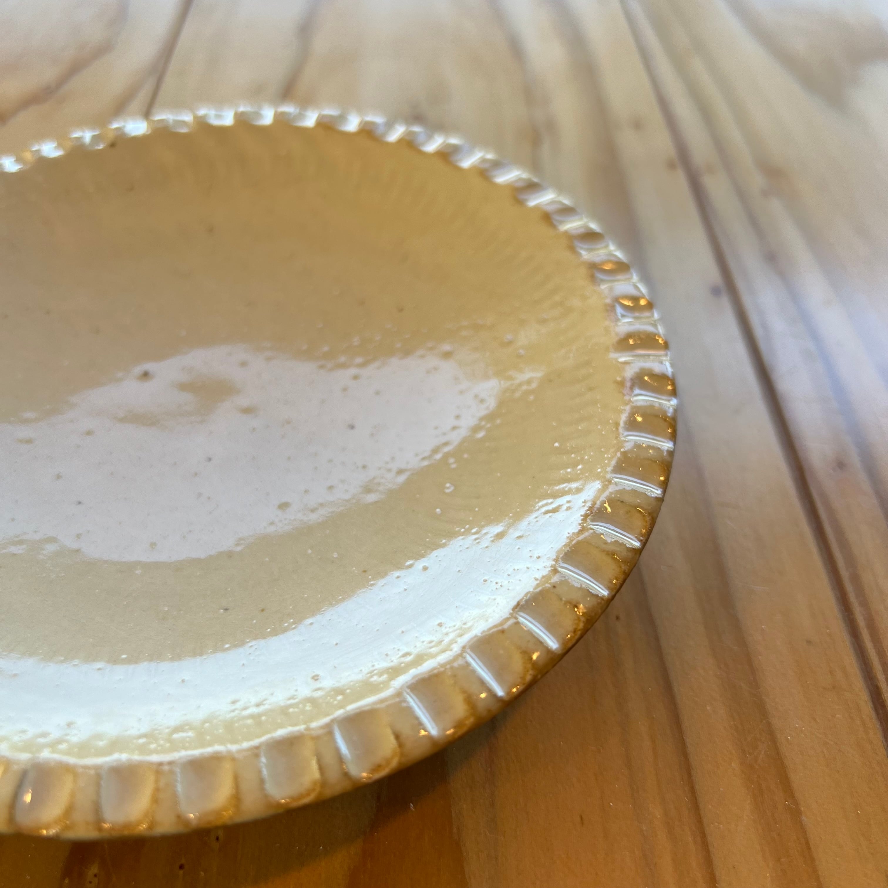 しのぎの彫りでふちどりされた、主役級の小皿。