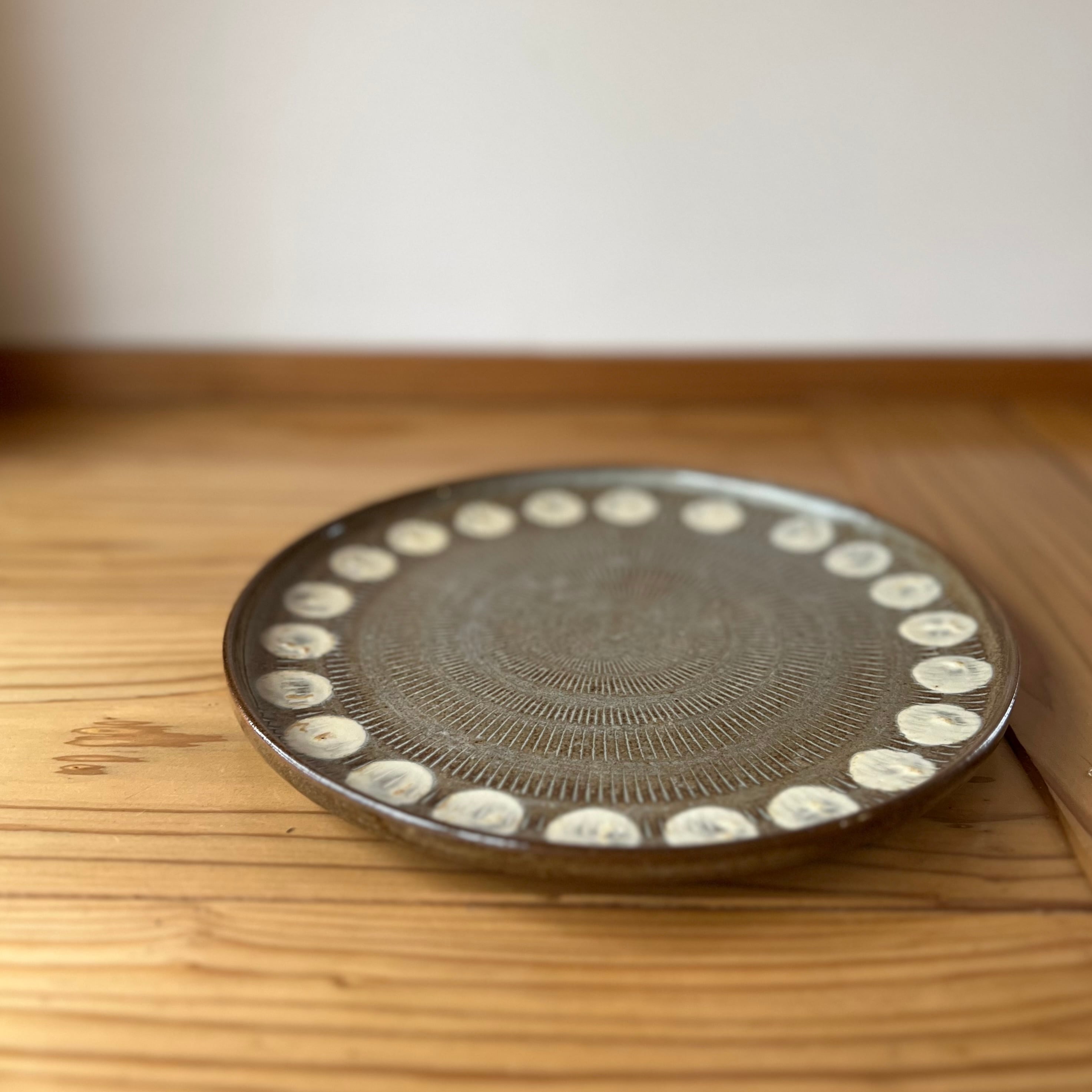 平らなお皿のふちが少しだけ立ち上がった、盛り付けしやすいプレートです。