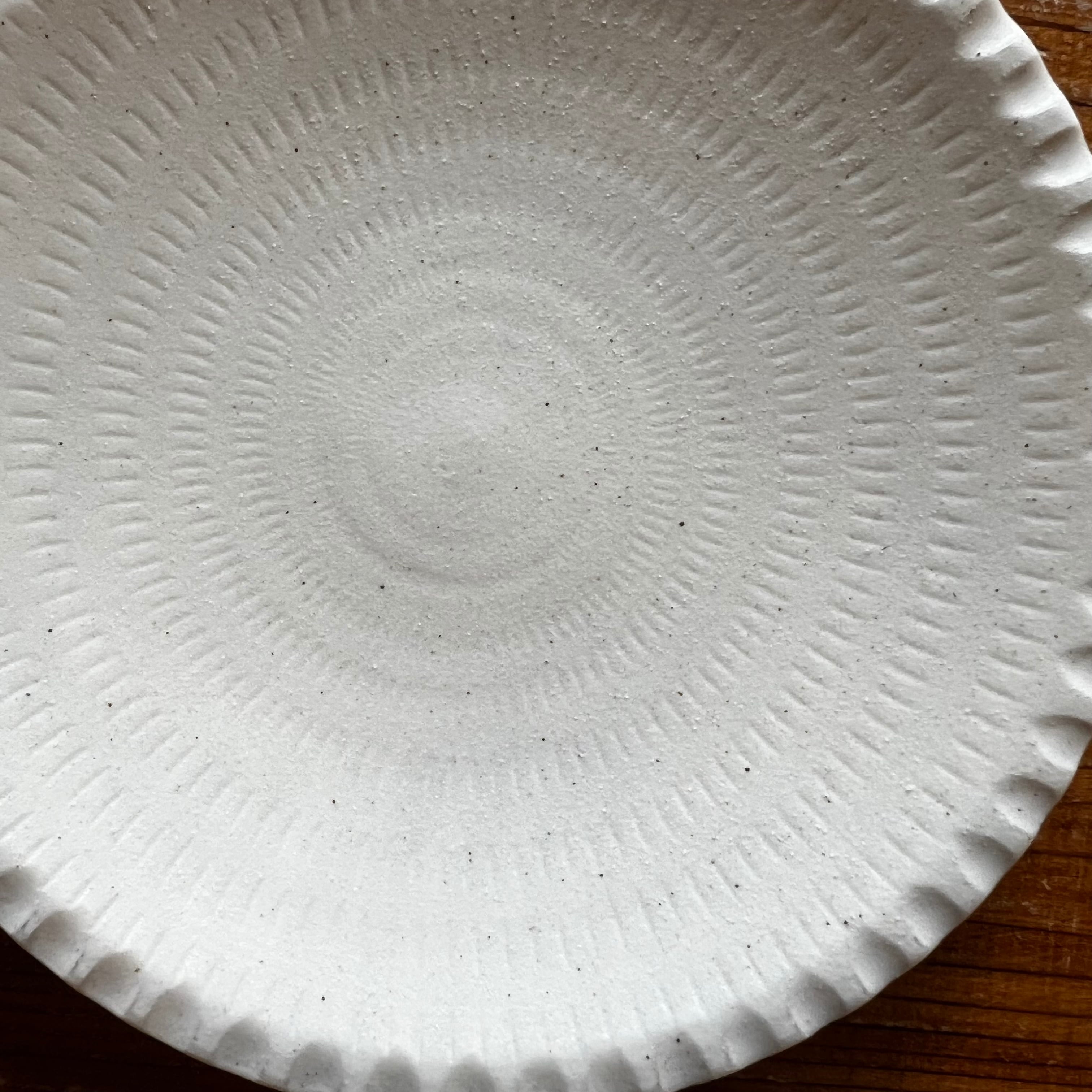 しのぎの彫りでふちどりされた、主役級の小皿。