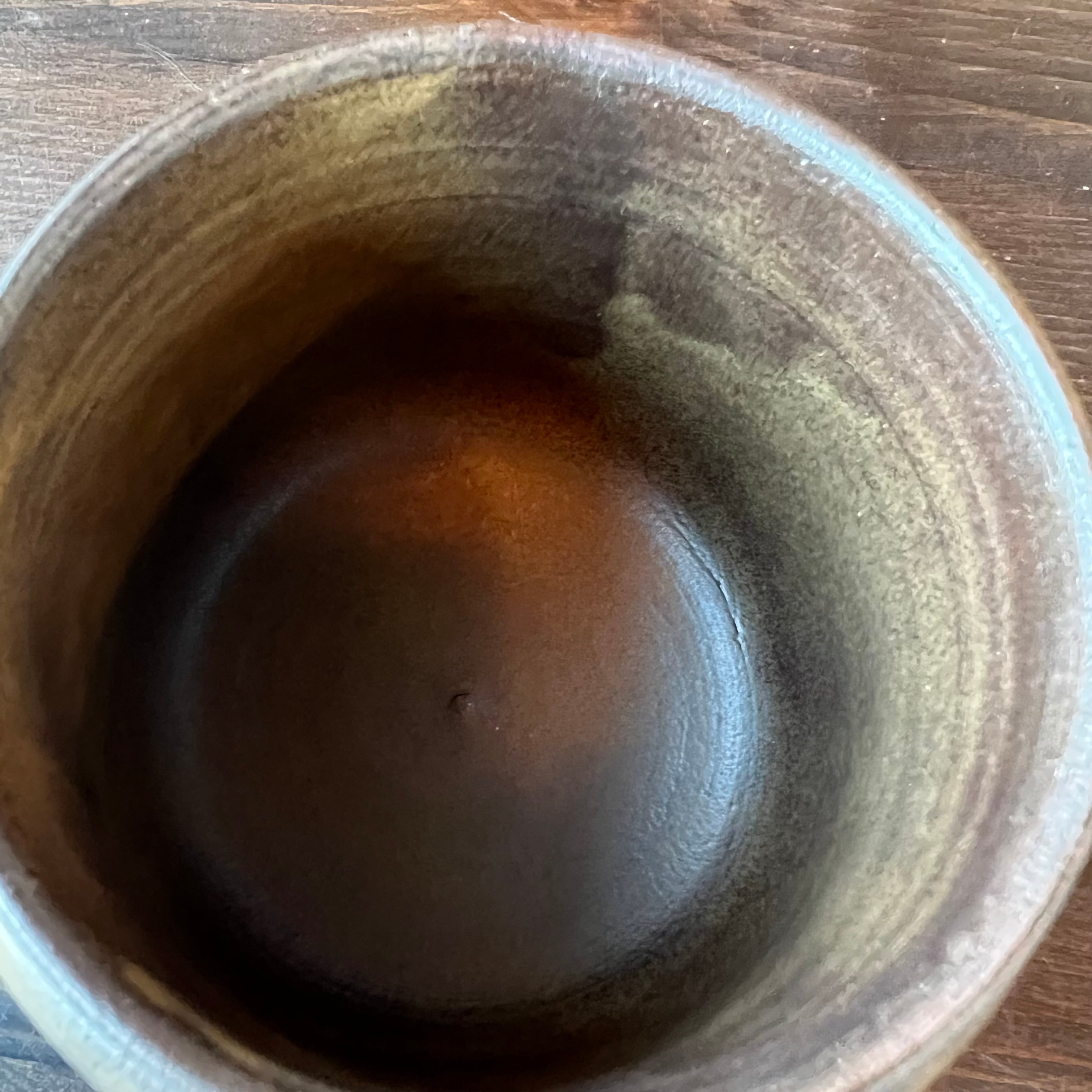 器の肌に細かいひびのような模様は貫入といって、陶器の表面の小さな隙間にお茶やコーヒー、